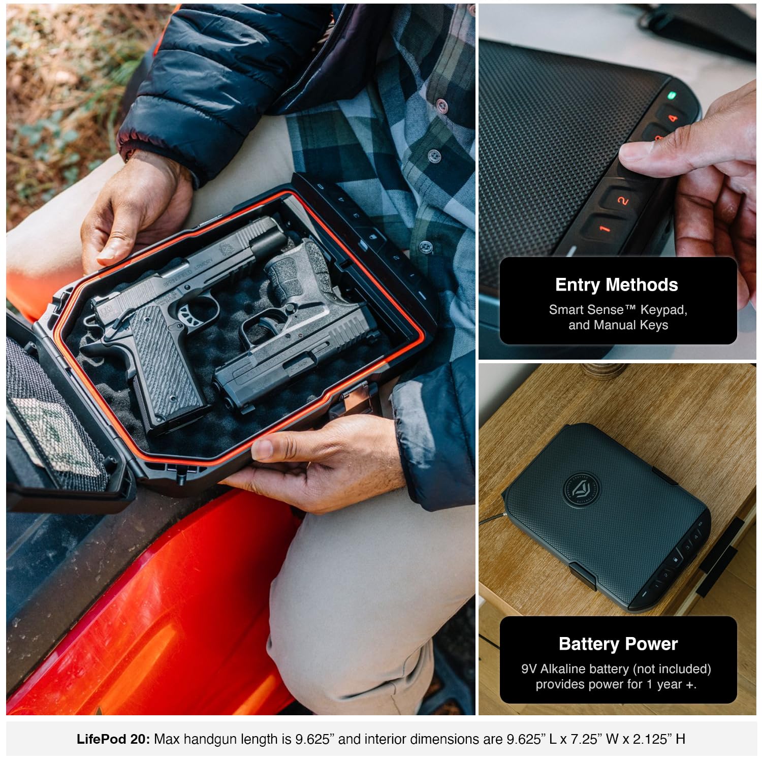 - Building on the successful LifePod platform, LifePod 20 can store a full-size handgun up to 9.25” long, features a removable interior tray for stackable storage, and a convenient interior LED light.