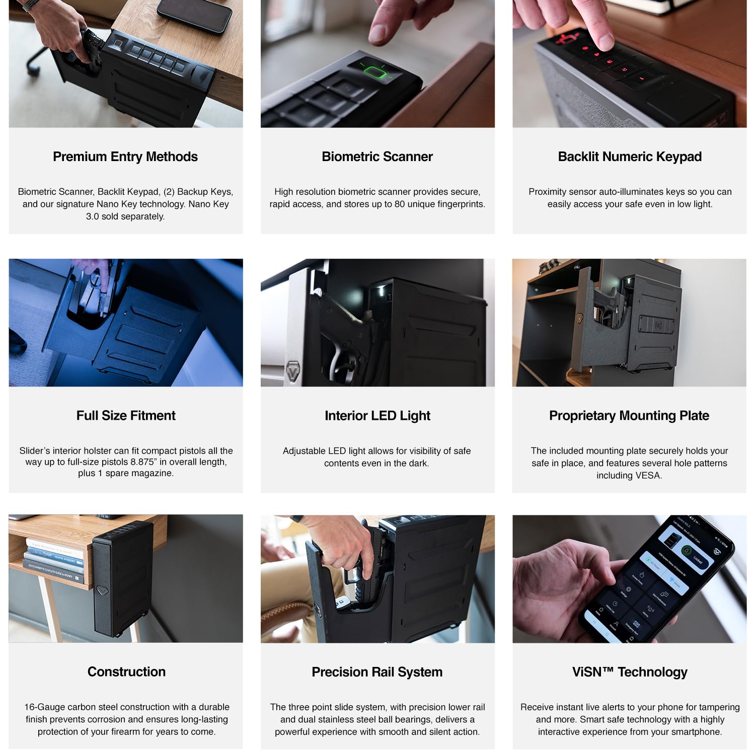VAULTEK Slider Series Rugged Smart Handgun Safe Quick Auto-Open Sliding Door Pistol Safe with Rechargeable Li-ion Battery (Biometric + ViSN WiFi)