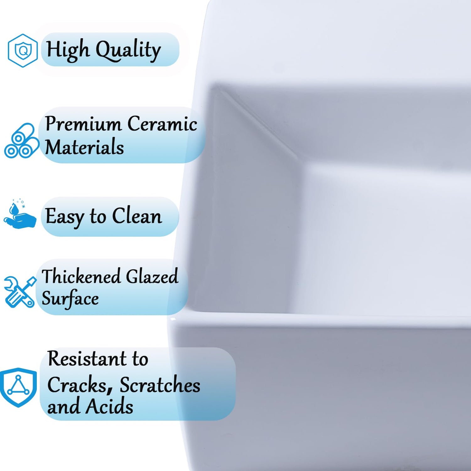 - NOT EASY TO CHANGE COLOR:The thickened and smooth ceramic ensures that the sink basin is not easy to change color, it always shines like a brand new one with bright white color.