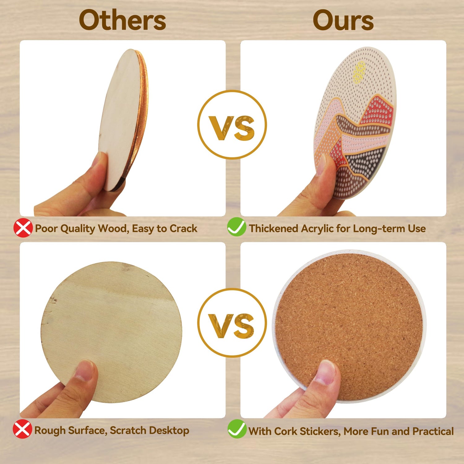 - Thickened Acrylic: These diamond art coasters are made of thickened acrylic, not easy to wear, break, or deform, and can be used for a long time.