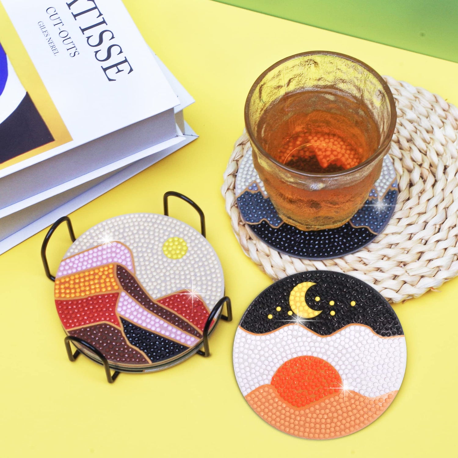 - Glittering DIY Kits: The diamond painting coasters set is full of color and does not fade. Suitable for kitchen, dining table, and desk decoration.