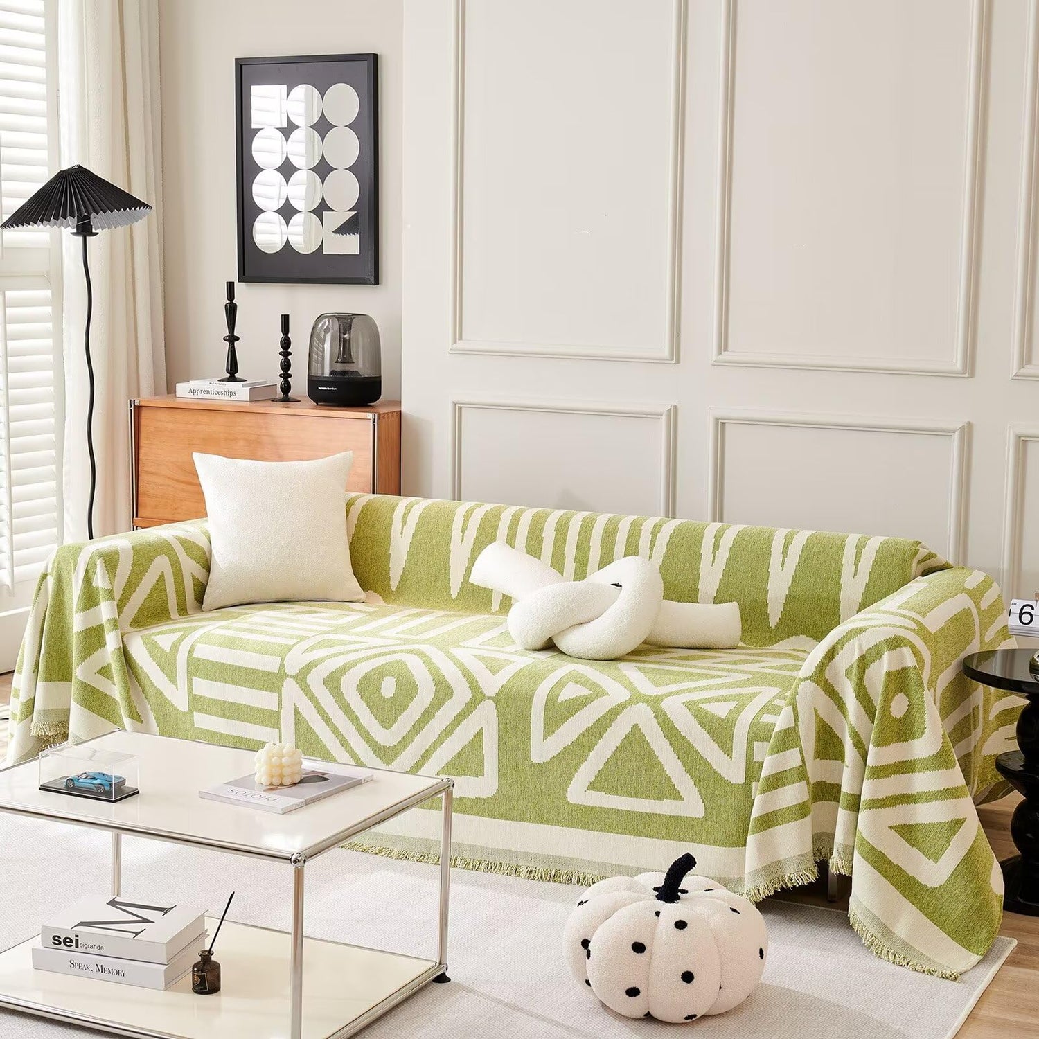 - ππππππππ πππ π πππππ πππππ π ππ πππππππ/πππ ππ: Reversible cream white and green sofa cover features boho triangle checked geometric pattern, very soft and modern, it can be draped over furniture like chairs, couches or beds, enjoyed outdoors in the backyard, camping ,beach to to protect your couch from daily wear and tear and spills. Also, the modern couch cover can be a bedspread, carpet, table cloth, wall hanging tapestry, office blanket, bed sheets.