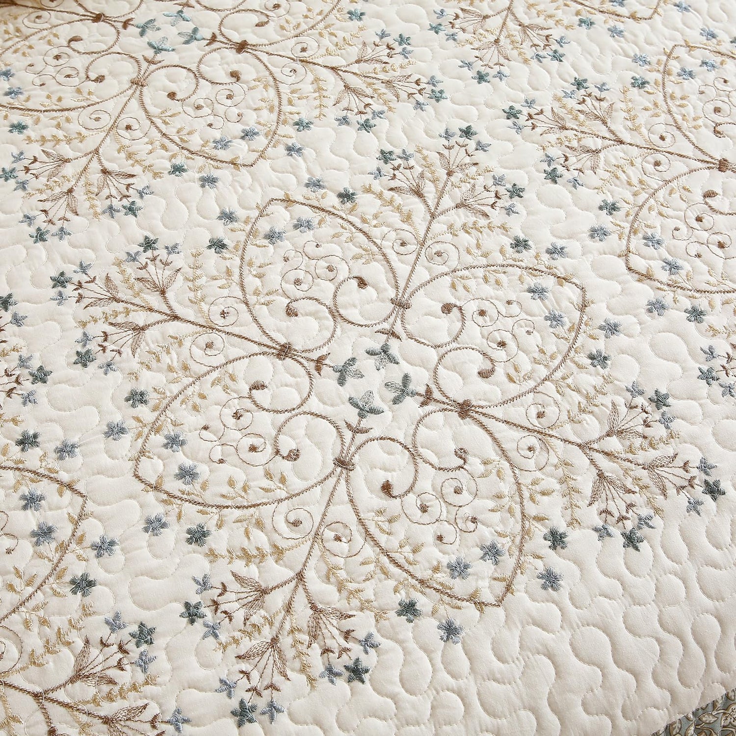 vctops Elegant Embroidered Quilt Set Farmhouse Patchwork Oversized Queen Size Reversible Bedspread Coverlet 3 Piece Cotton Quilted Bedding Set for All Season, 1 Quilt + 2 Pillow Sham (94x102 in)
