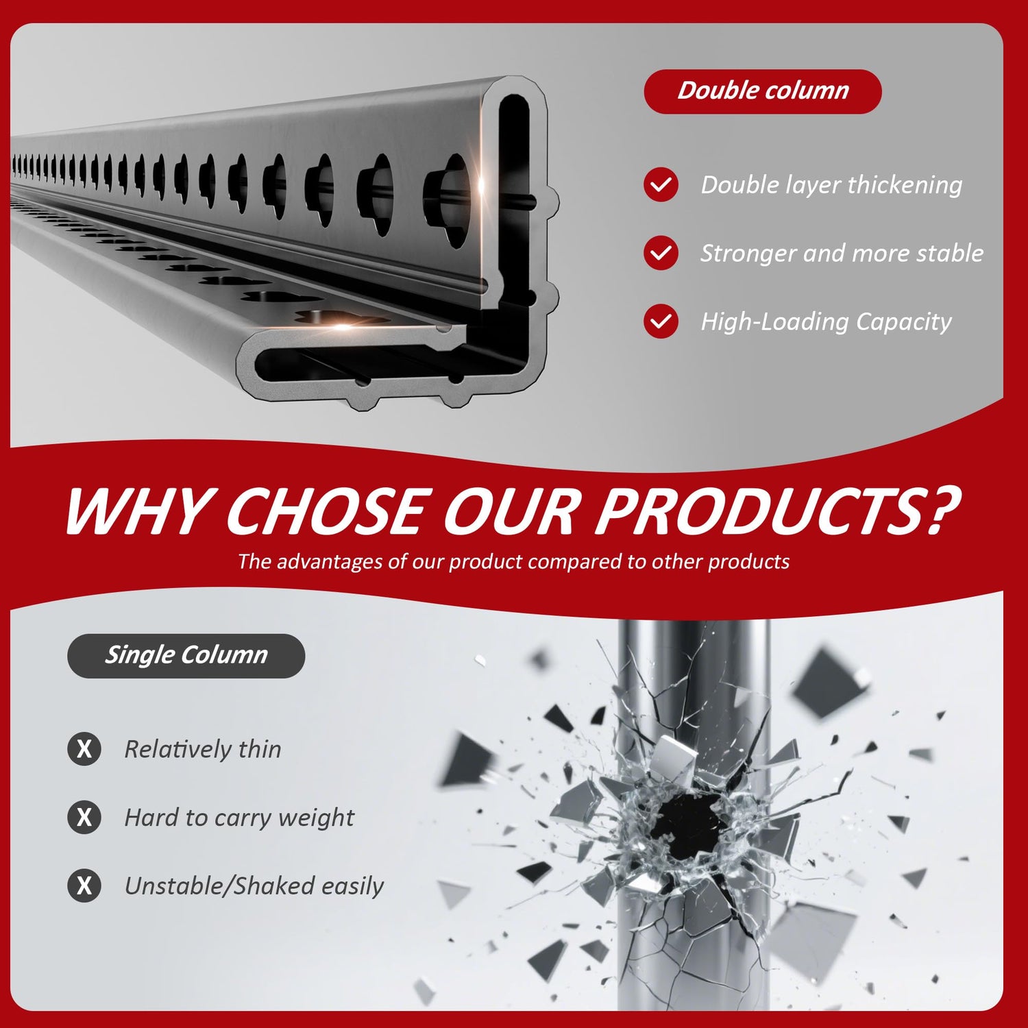- 【2000LBS Heavy Duty Garage Shelving】VDEVY Garage Shelving adopts unique double - column structure provides extremely stable support for the entire garage shelving units. This design greatly enhances the load - bearing capacity and stability of the shelf, ensuring that it won't shake or deform when storing large and heavy items, giving you more peace of mind when storing things