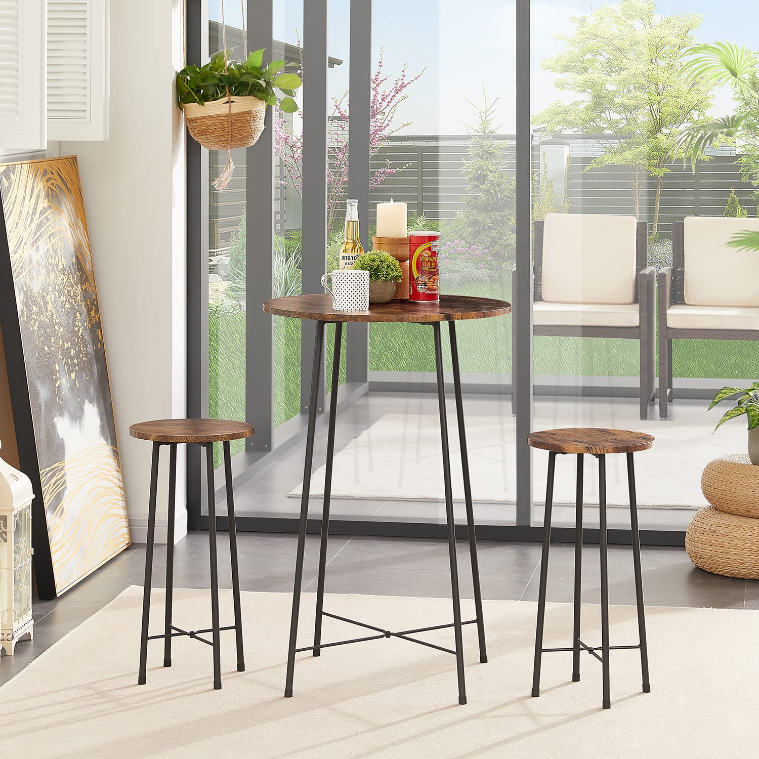 Complete with a worry-free 1-year warranty, VECELO stands behind their product. Should you encounter any issues, you can easily request free replacement parts or even a brand-new item for your convenience. The packaging also includes barstools, making it the perfect set to elevate your dining experience.
