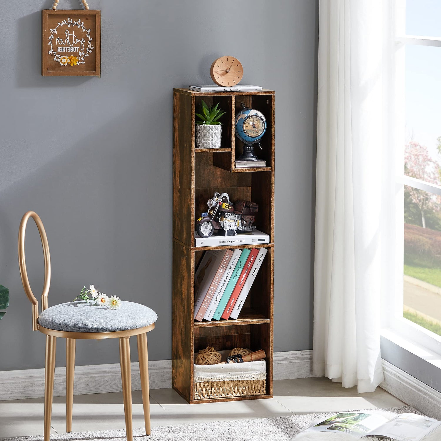 VECELO 4-Tier Bookcase, Modern Storage Cabinet with Height Difference Shelves for Standard Textbooks, 5 Cubes, Vertical or Horizontal, Easy Assembly, Rustic Brown