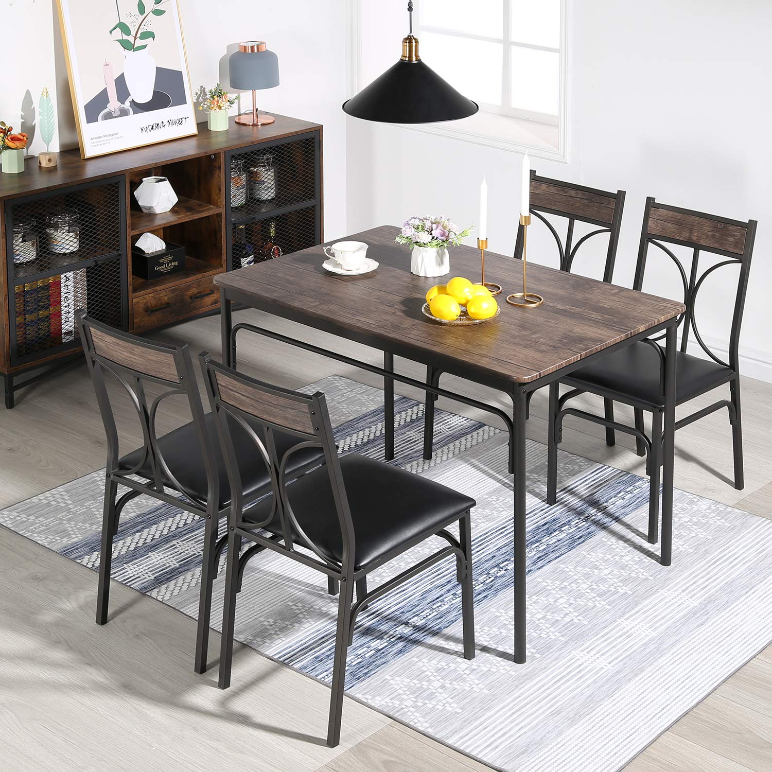 VECELO 5 Piece Kitchen Table Set for Dining Room,Dinette,Breakfast Nook,Industrial Style, Seating for Four, Brown