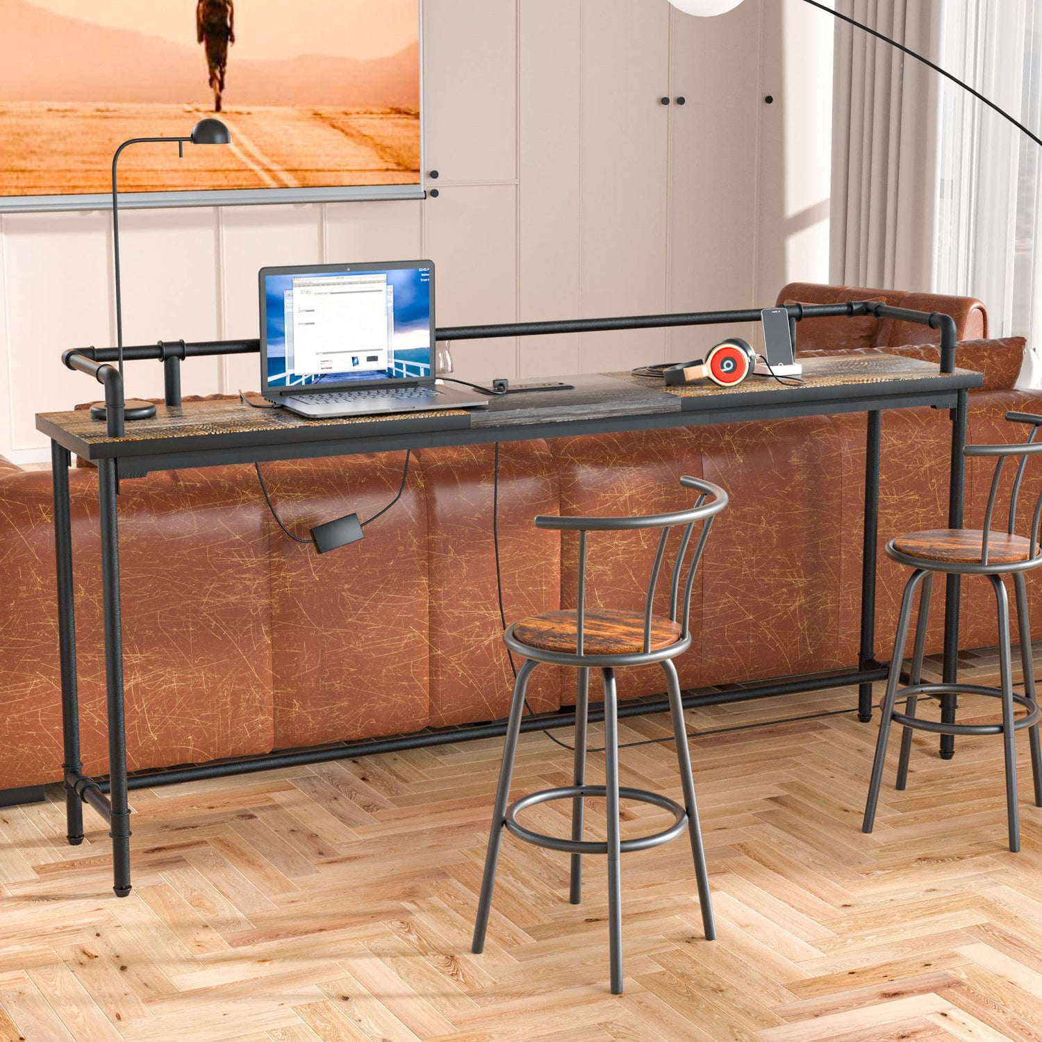 Details: VECELO Console Table with Charging Station, 2 Outlet/ USB Ports, Industrial Narrow Sofa Entryway Tables for Entrance Behind Hallway, Living Room, Foyer, Corridor