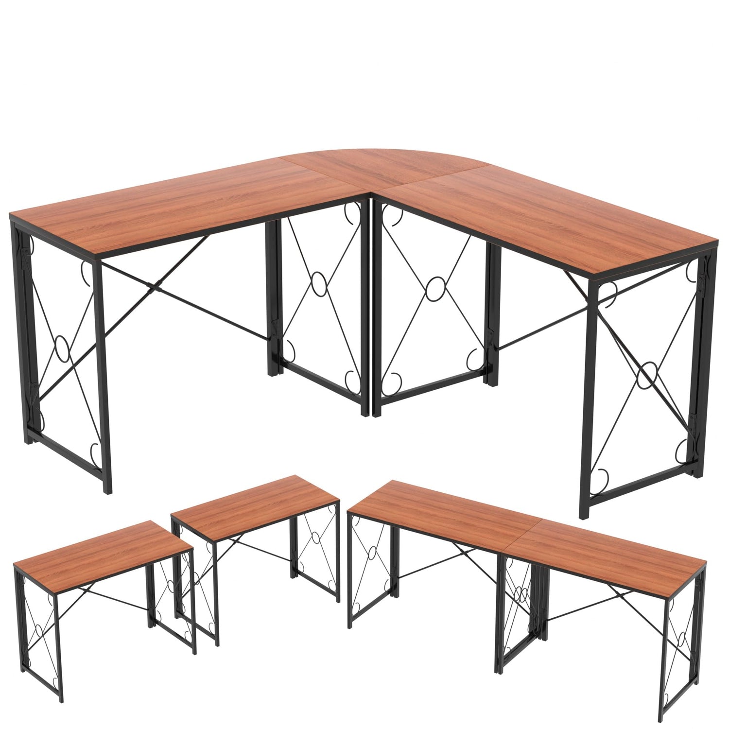 - [Versatile Home Office Desk] - By remove the round board, change the l shaped desk into 2 single small folding computer desk. Also composition both small desks together into a long 2 person table;