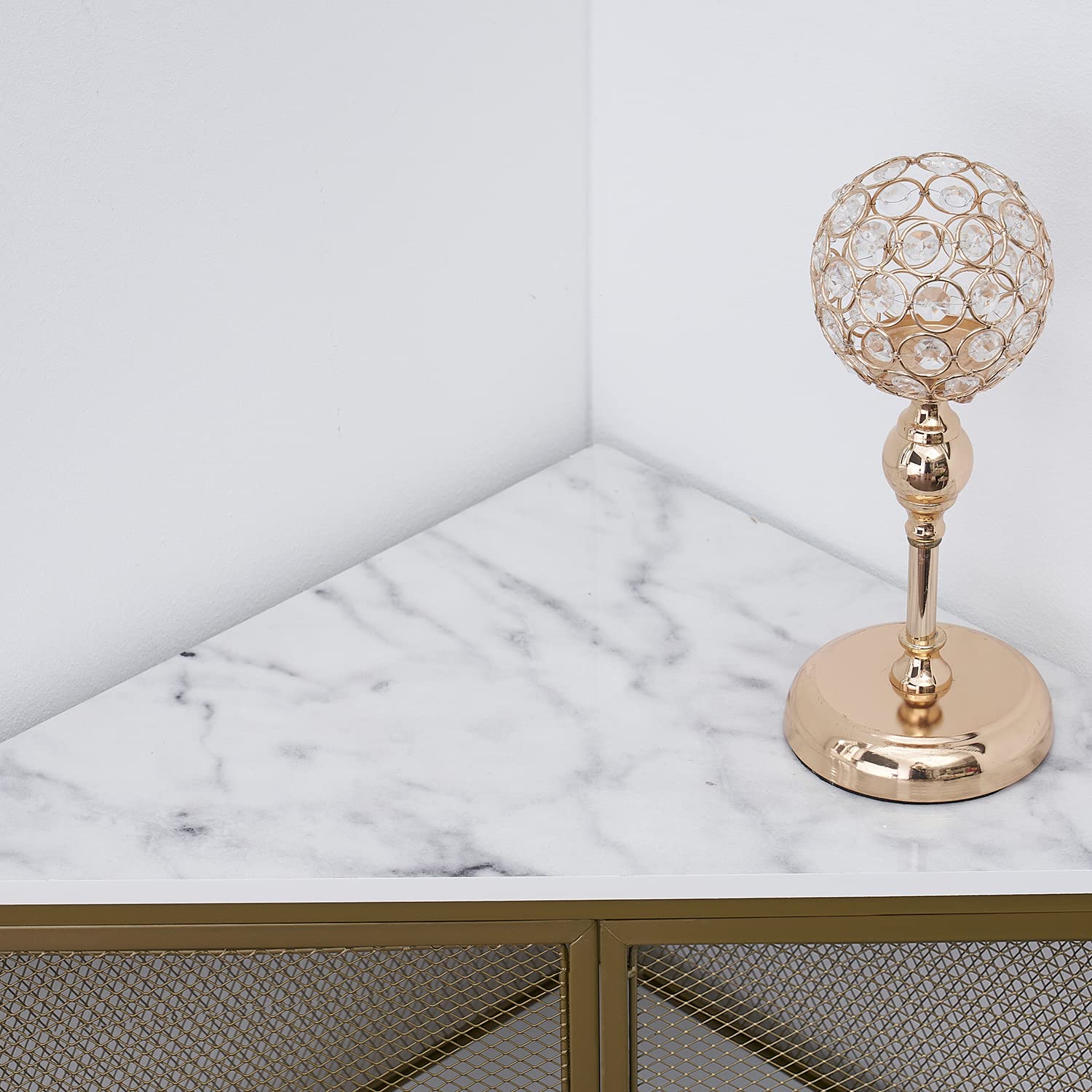 VECELO Corner Cabinet/Table, 3-Tier Shelves with Protection Door, Metal Frame Storage Shelf Organizer for Small Space, Living Room, Kitchen, Bathroom, Set of 1, Gold