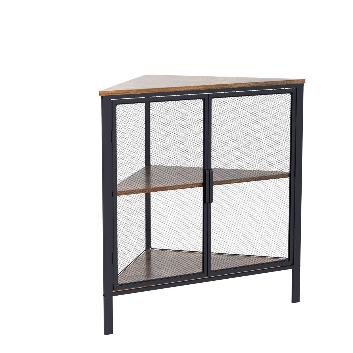 - 【Practical Corner Storage Cabinet】If your home has an odd corner small space, then you can take this corner cabinet with doors and shelves home for displaying and storing. The vintage brown wood table top and black metal frames complete each other. Perfect for any small corners in the living room and bedroom.