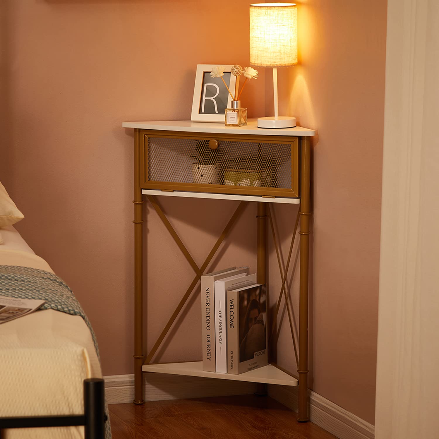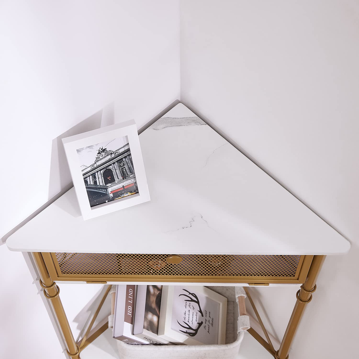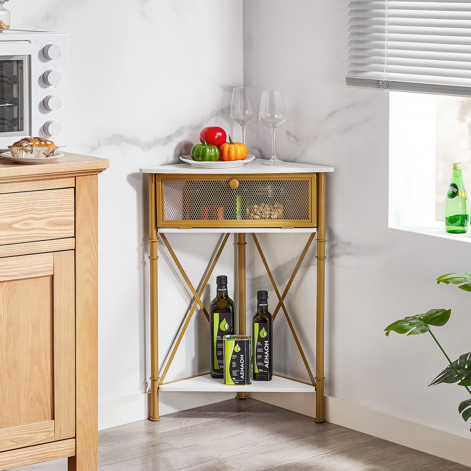 - 🎄[Ample Storage Space] This corner table is 29.5"H, and designed with two-tier shelves, and drawer with flipped door. It provides sufficient storage space for your items.