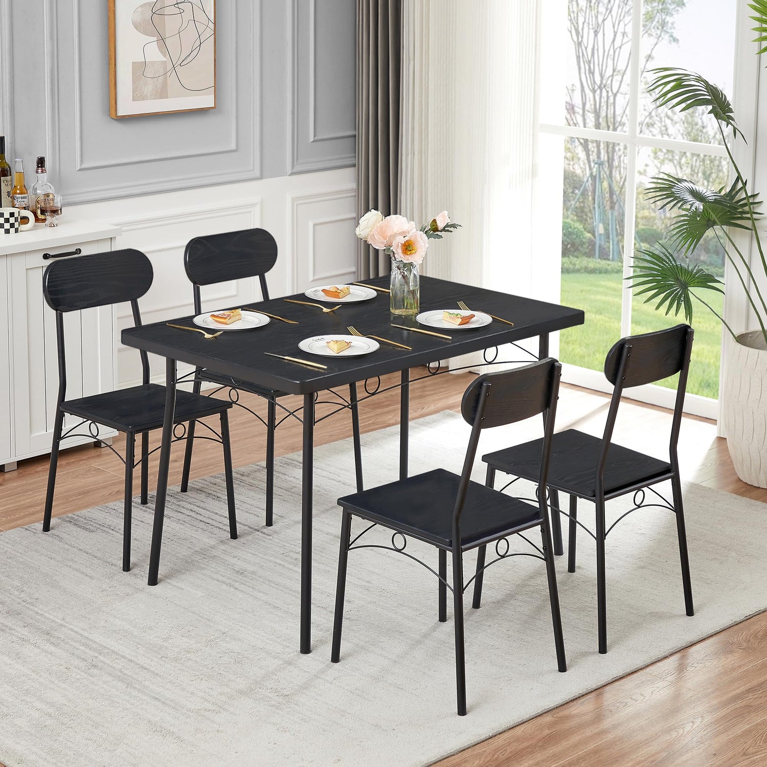 VECELO Dining Table Set for 4, 5 Piece Dinette with Chairs for Kitchen, Breakfast Nook and Small Space, Black