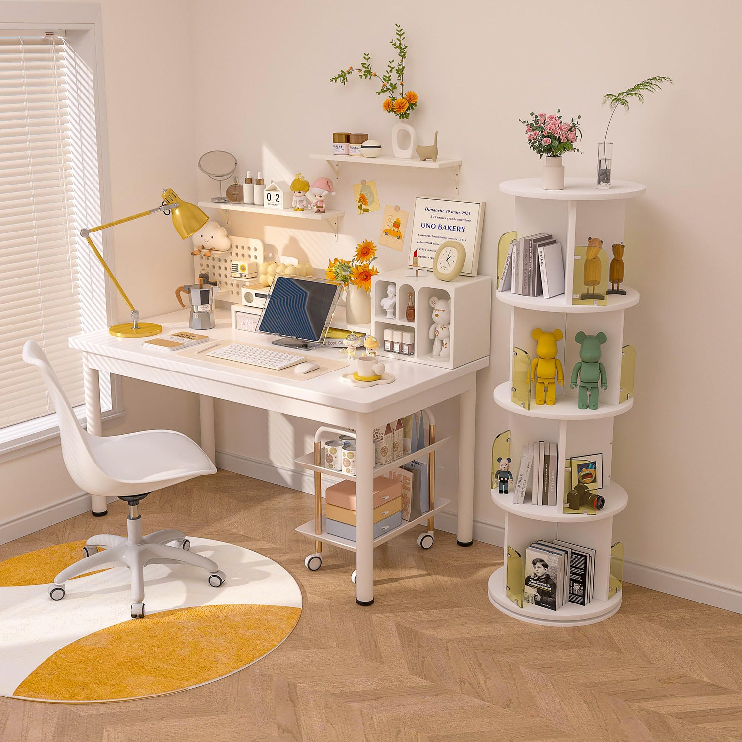 Introducing the VECELO 4-Tier Rotating Bookshelf, an elegant pearl white corner storage solution that seamlessly combines style and functionality for your home or office. This innovative bookshelf is perfect for those who love to stay organised while adding a touch of sophistication to their space.