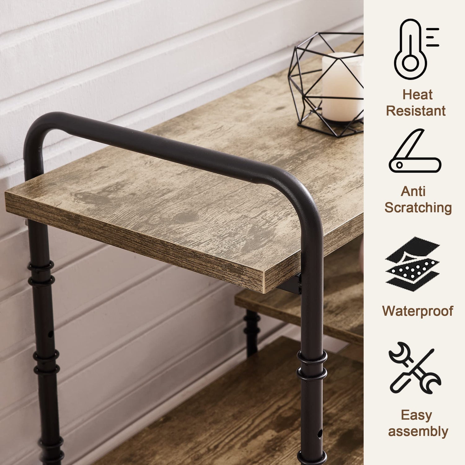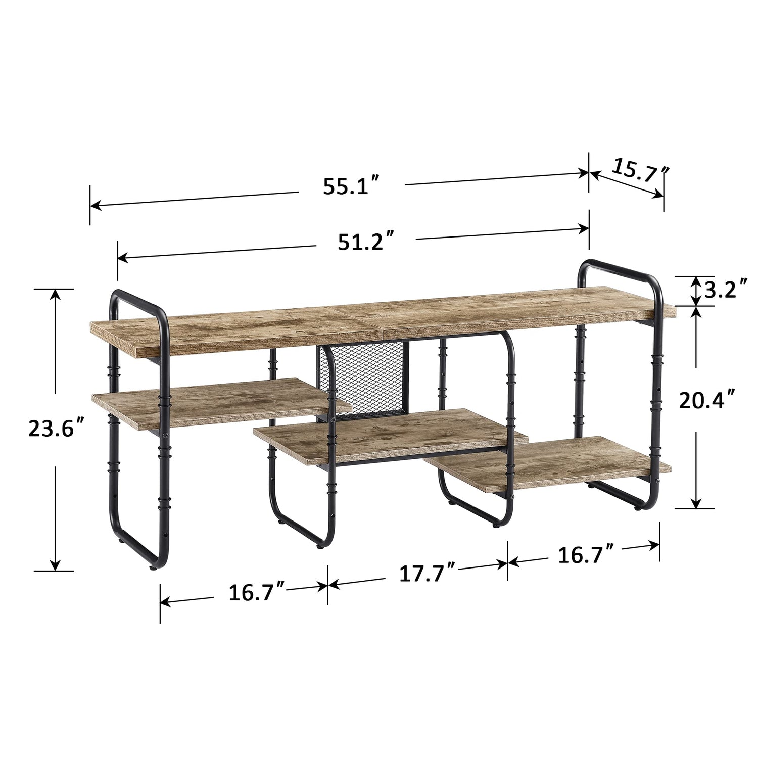 - 🎮 [Lean Design] This industrial TV console table gets rid of fussy design and excessive decoration, seeking as little design as possible. The console table has two colors (brown and grey) and three size (55/63/71 inches) for you, which fits the TV range up to (55/65/75 inches).