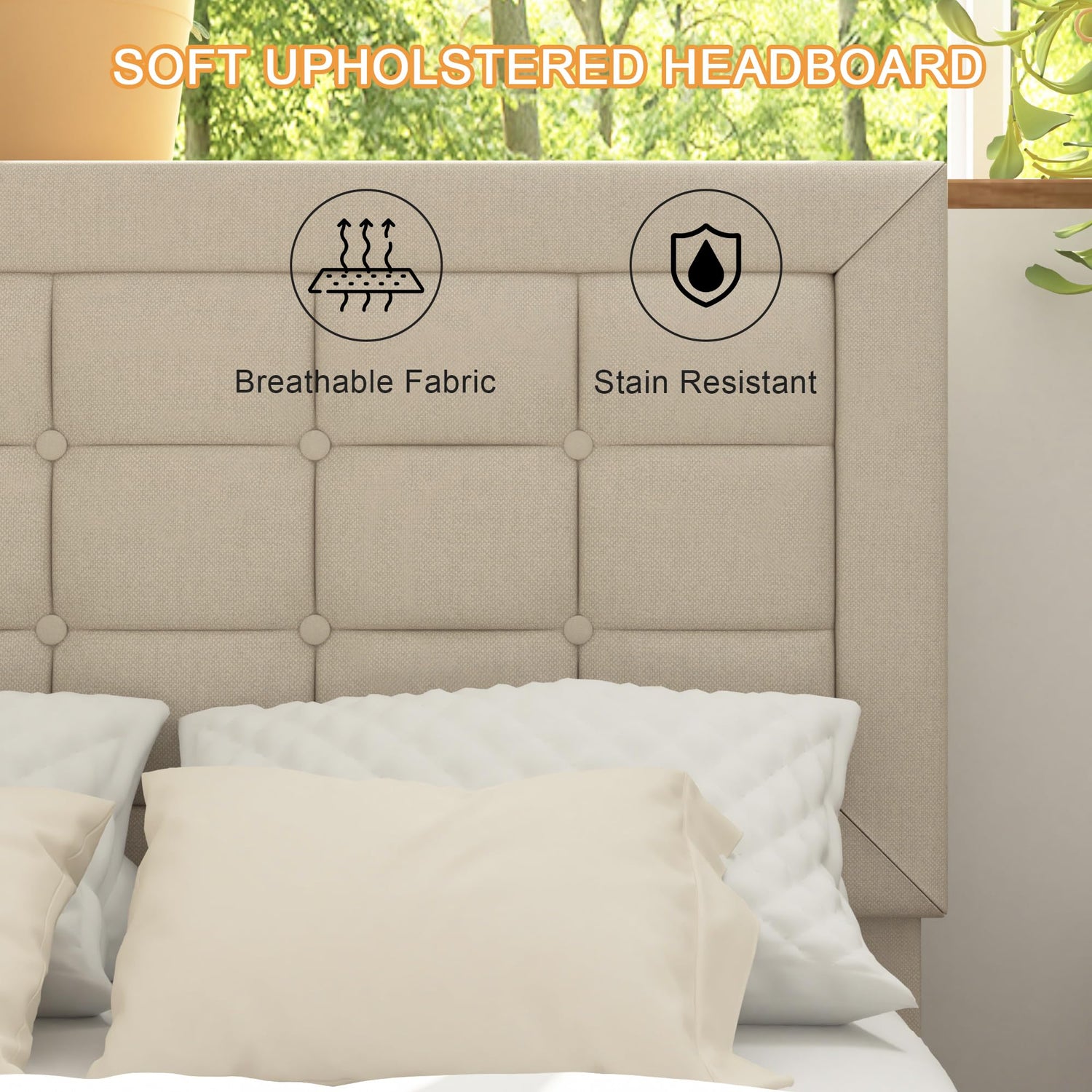 - [STYLSIH AND COMFORTABLE] - This classic square silhouette twin bed frame features Upholstered linen and tufted button headboard, making it perfect for a variety of bedroom styles. Thick and dense foam padding gives you comfortable touch.
