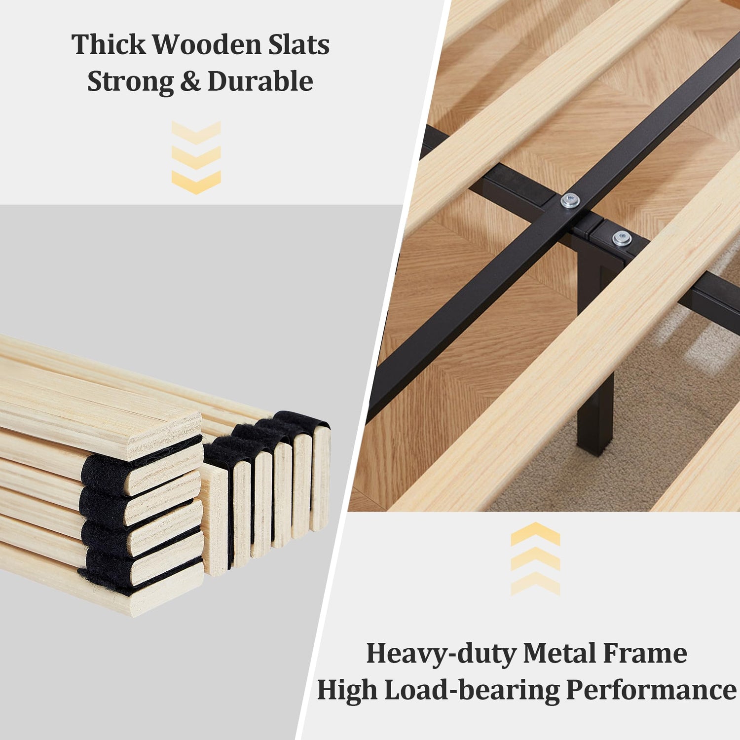 - [NOISE-FREE DESIGN] The slats of this twin bed frame are specially designed with velcro to prevent friction. In addition, the foot of the upholstered twin bed with non-slip foot pads protects the floor and reduces noise, creating a quiet and comfortable resting environment for you.