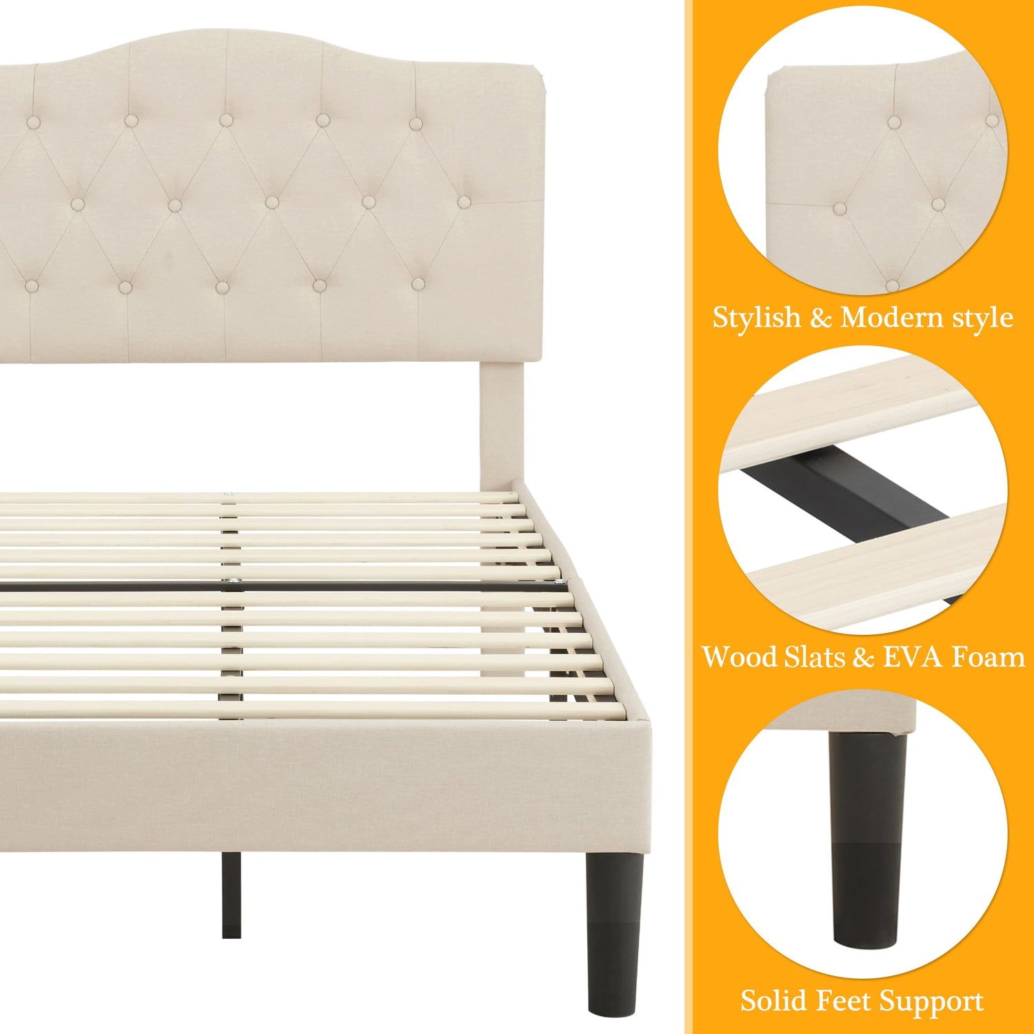 - 【Stylish & Elegant】The bed’s headboard is made of high-quality linen fabric in appearance, with a built-in memory sponge with high resilience. Each of the buttons tufted on the headboard is equally distributed to control the sponge inside.