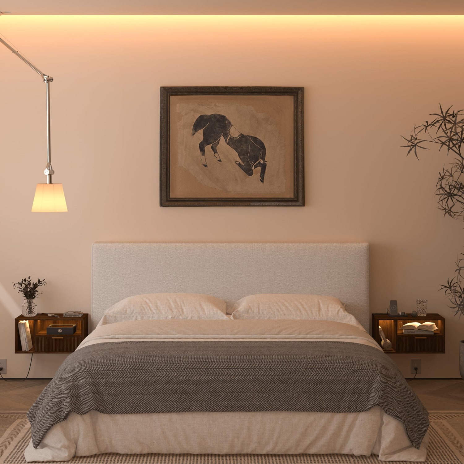 Veegle Floating Nightstand with Charging Station and LED Lights, Walnut Brown
