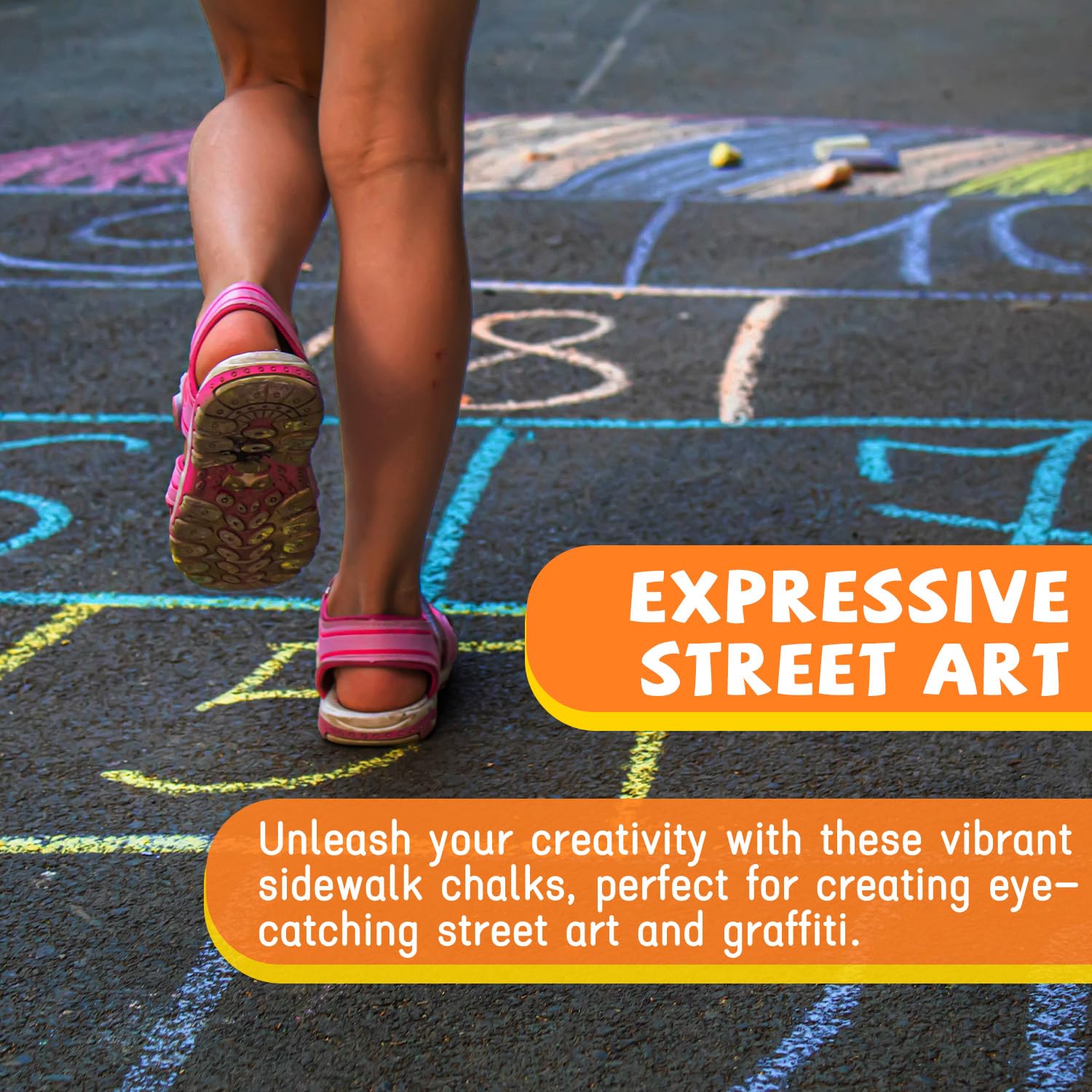 - EXPRESSIVE STREET ART -- Unleash your creativity with these vibrant sidewalk chalks, perfect for creating eye-catching street art and graffiti