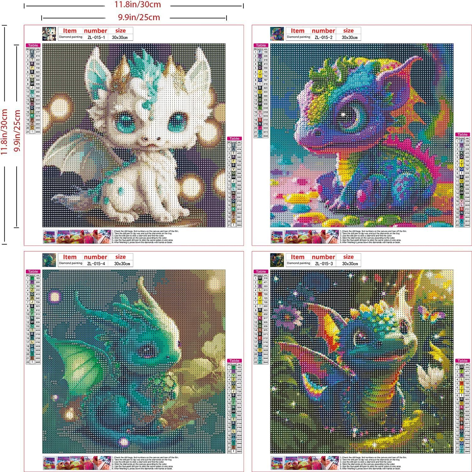 VeGuude Diamond Painting Kits for Adults - 4 Pack Dragon Zodiac DIY 5D Diamond Art Kits Full Drill Diamond Dots Paintings with Diamonds Gem Art and Crafts Home Decor 12x12inch