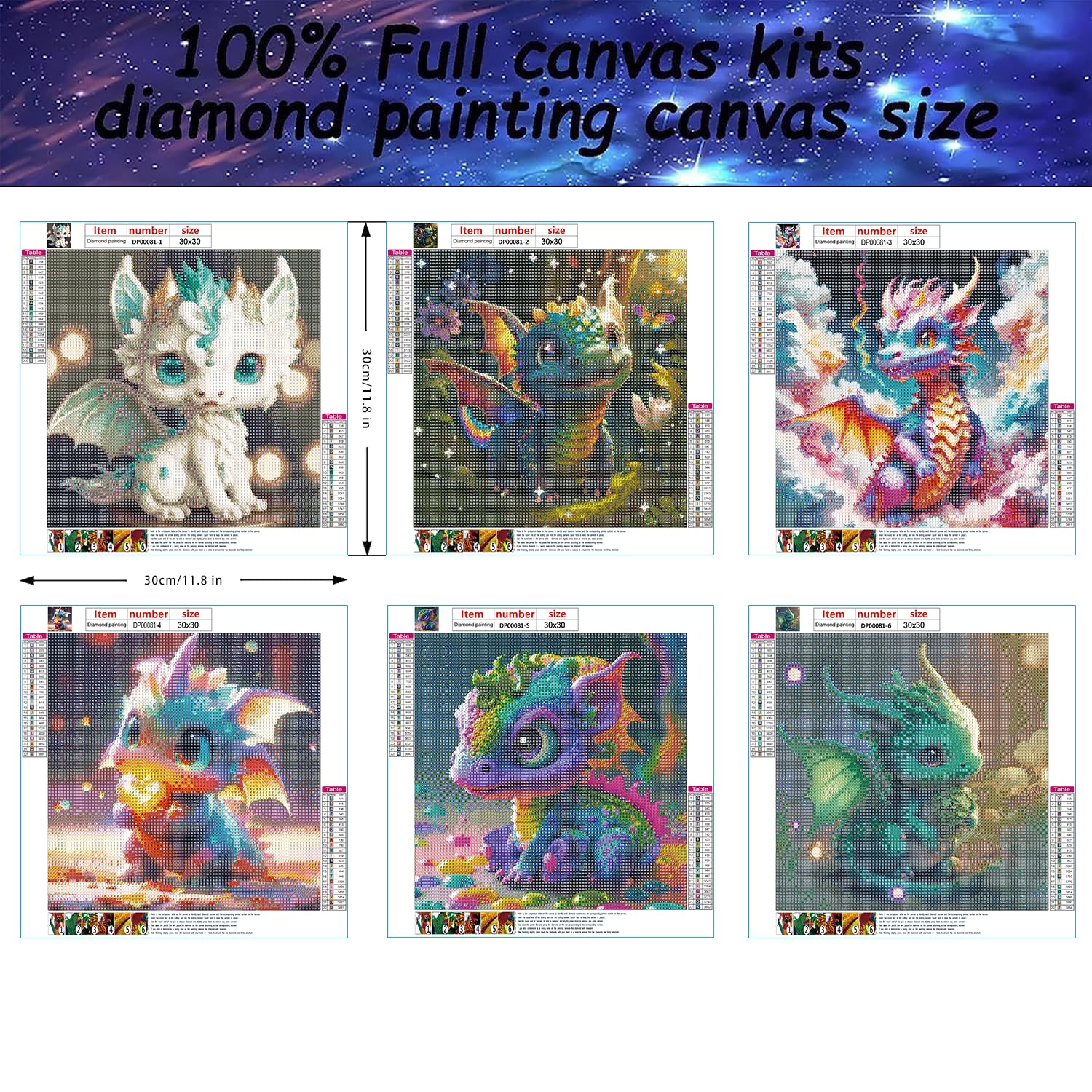 VeGuude RYMILIE Diamond Painting Kits for Adults - 6 Pack Little Dragon DIY 5D Diamond Art Kits Full Drill Diamond Dots Paintings with Diamonds Gem Art and Crafts Home Decor 12x12inch