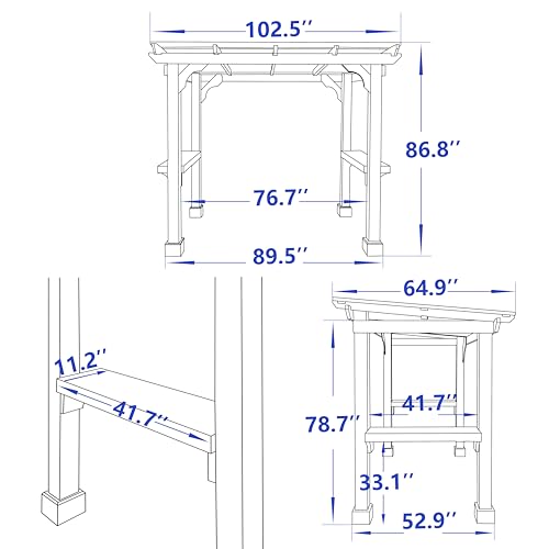 - Dimensions - Overall size:102.5"L x 64.9"W x 86.8"H. Countertop size:41.7” L x 11.2” W.