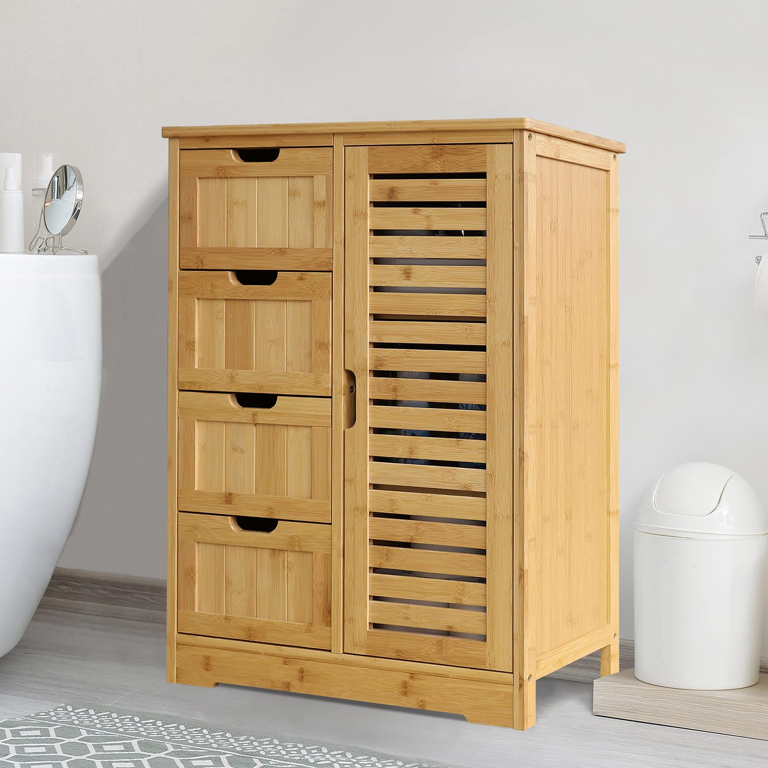 VEIKOUS Bathroom Floor Cabinet with 4 Drawers, Bamboo Freestanding Small Bathroom Storage Cabinet with 2 Removable 23.7inchW x 32.5inchH x 11.9inchD bamboo-floor-cabinet-1 bamboo-floor-cabinet