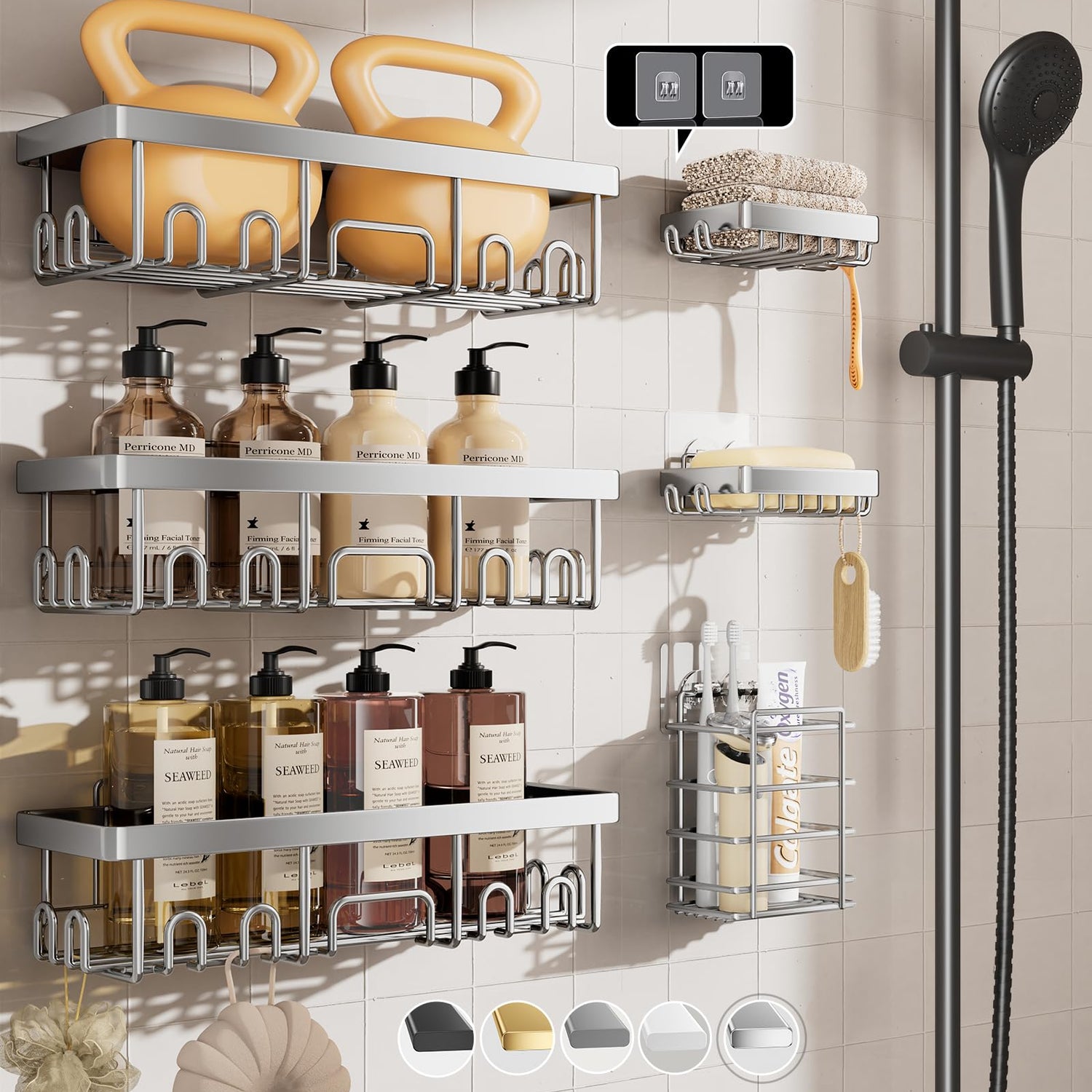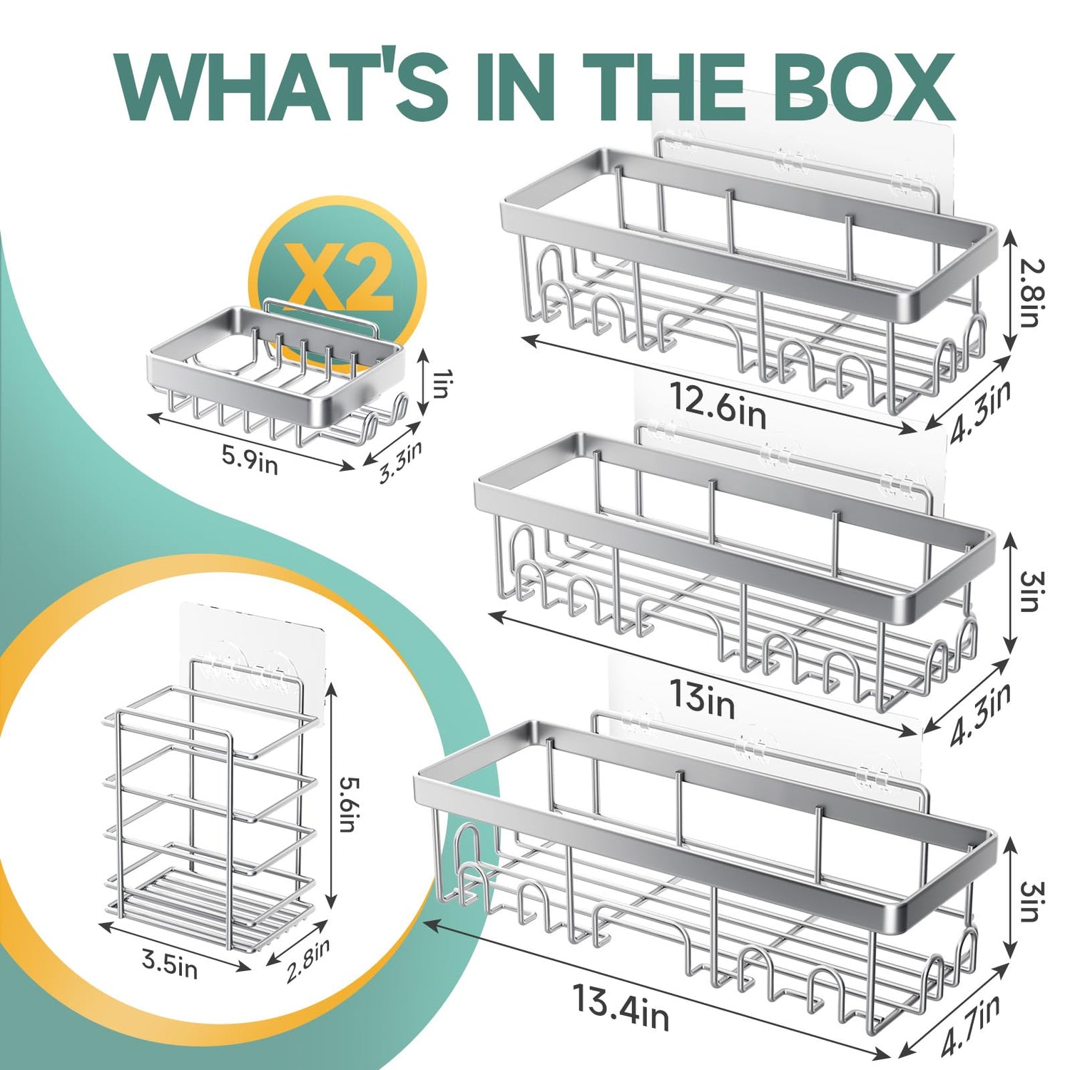 - Comprehensive Storage Solution: This 6-piece set includes small, medium, and large caddies with a soap dish and toothbrush holder to organize shower essentials. Keep your shampoos, soaps, razors, and more neatly stored in one place for easy access.