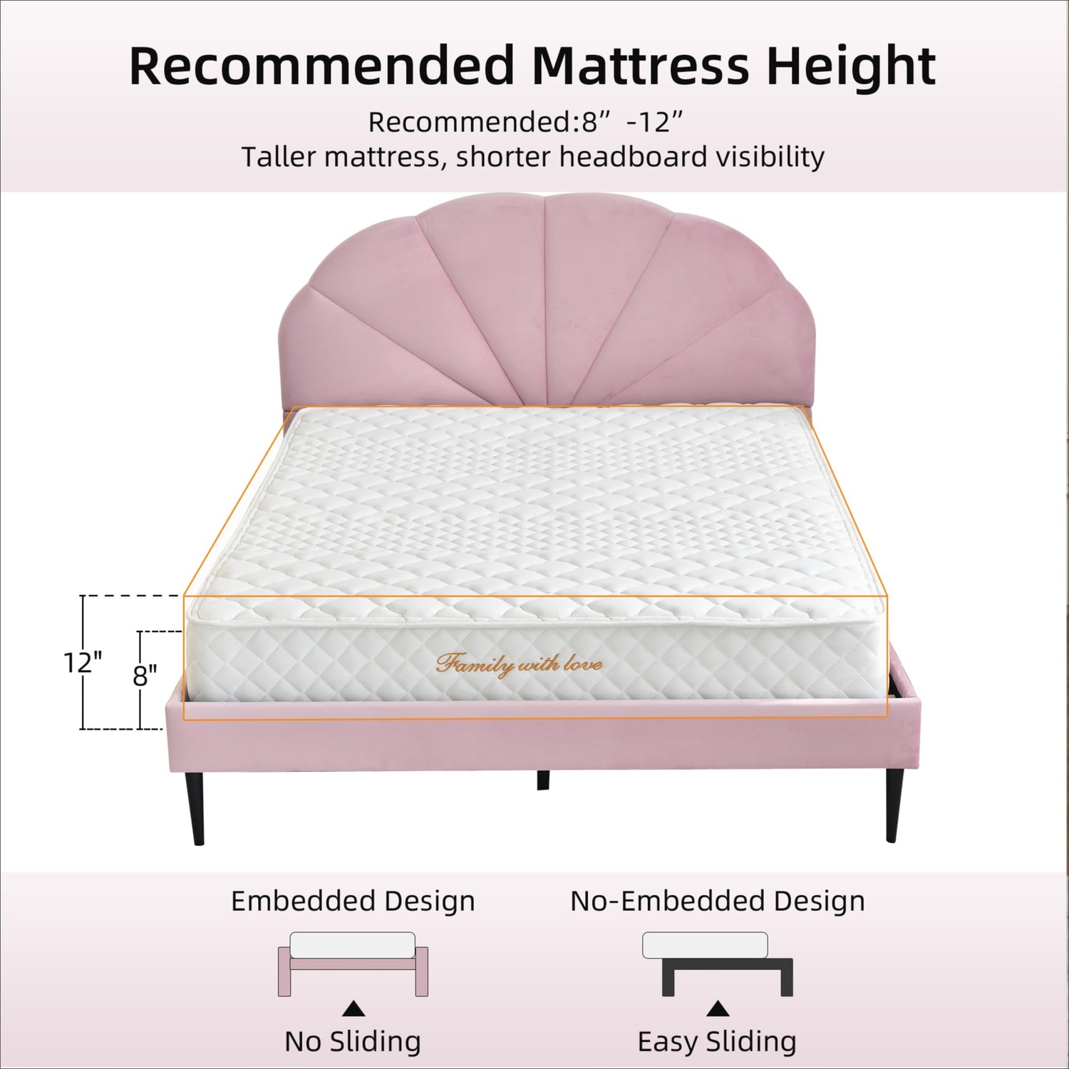 - 【Unique Seashell Headboard with Velvet Comfort】The headboard of this bed frame is padded with high-resilience foam and upholstered in luxurious velvet fabric, providing a skin-friendly touch and exceptional comfort for optimal relaxation. The uniquely elegant shell-shaped design adds a chic and subtle beauty to your bedroom decor, making it perfect for children, teens, and adults alike.
