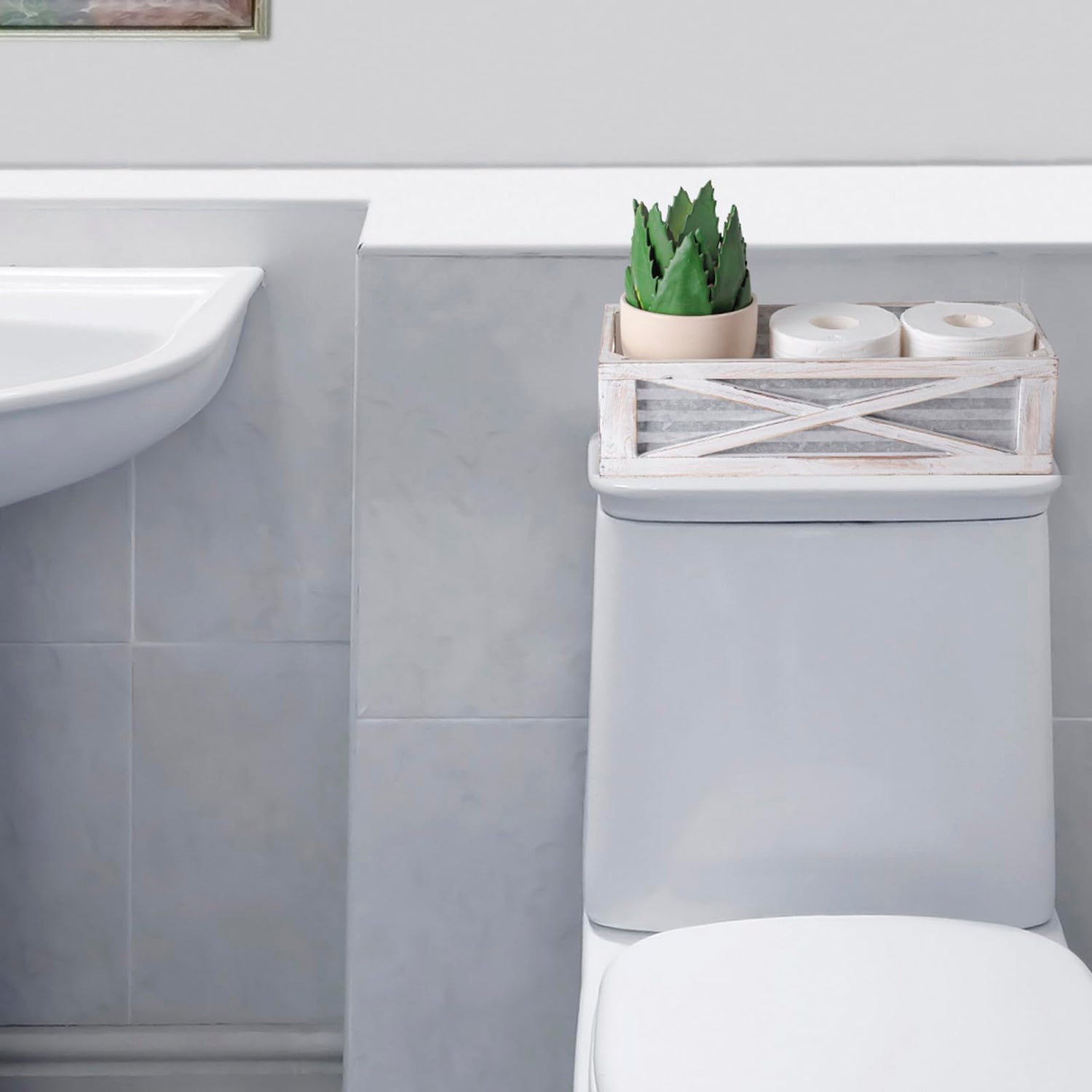 Details: Bring a touch of rustic charm to your home with this versatile toilet tank basket. Crafted from sturdy wood, this decorative box effortlessly blends form and function. Its natural finish and simple design allow it to seamlessly complement various decor styles, from farmhouse to modern. Whether you choose to use it as a toilet tank caddy to store essentials like toilet paper rolls or as a chic storage solution for your bathroom, bedroom, or living space, this basket adds warmth and character. Measuring approximately 14"L x 6.3"W x 3.9"H, it offers ample space to organize your items while maintaining a tidy appearance. Elevate your home's aesthetic with this versatile and charming toilet tank basket.