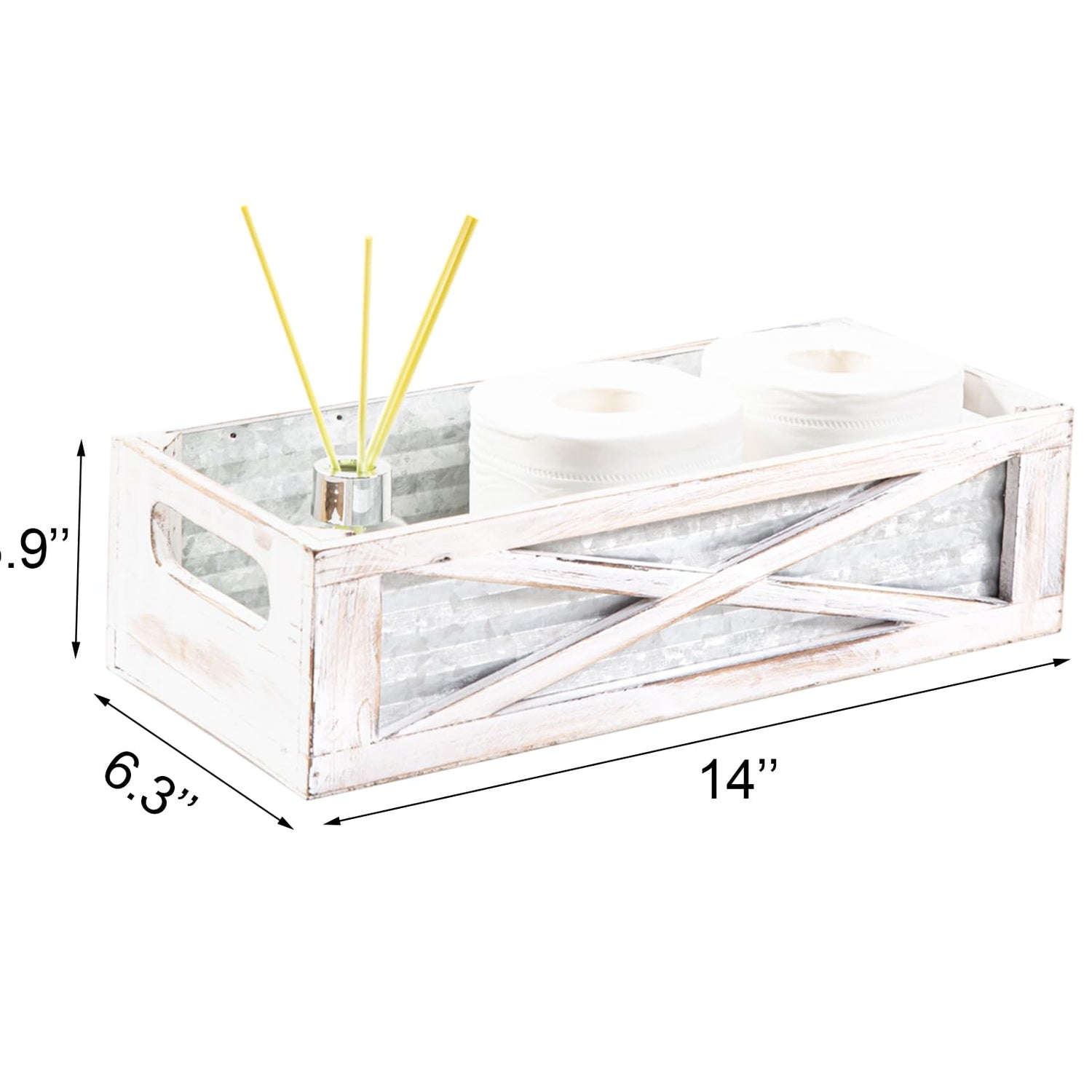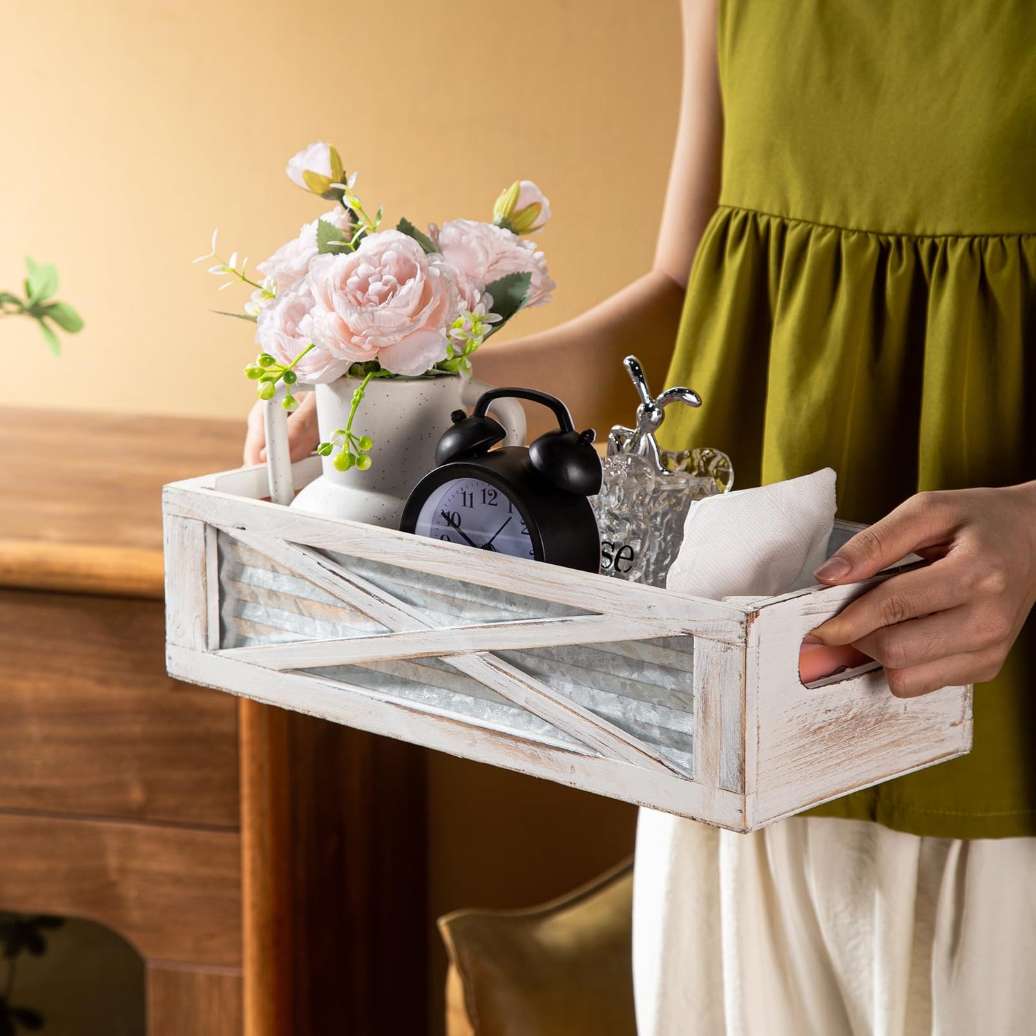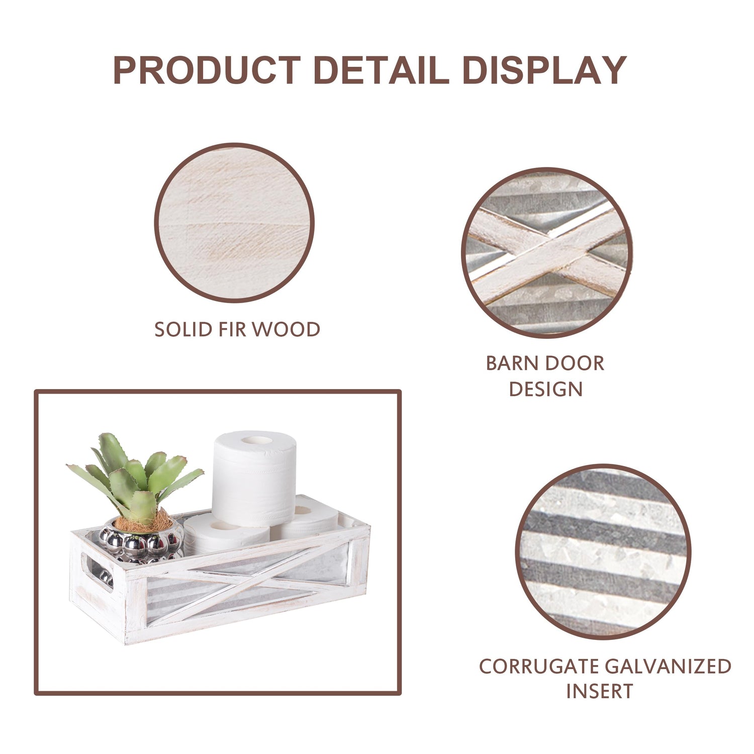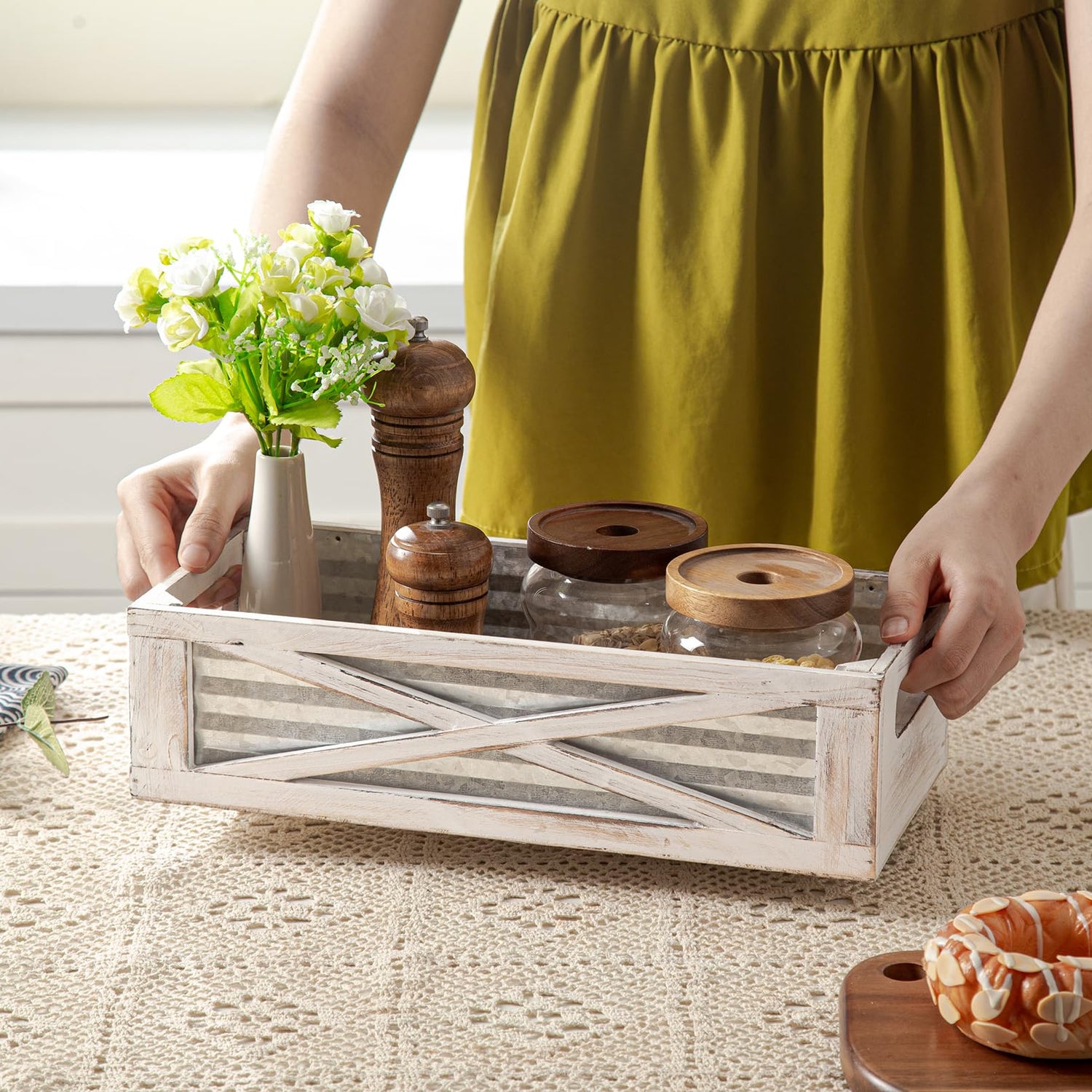 - STURDY CONSTRUCTION - Crafted from high-quality solid wood and galvanized sheet, this farmhouse decorative box is sturdy and durable for long-term use. With 4 non-slip pads in the bottom to prevent scratches the countertop.