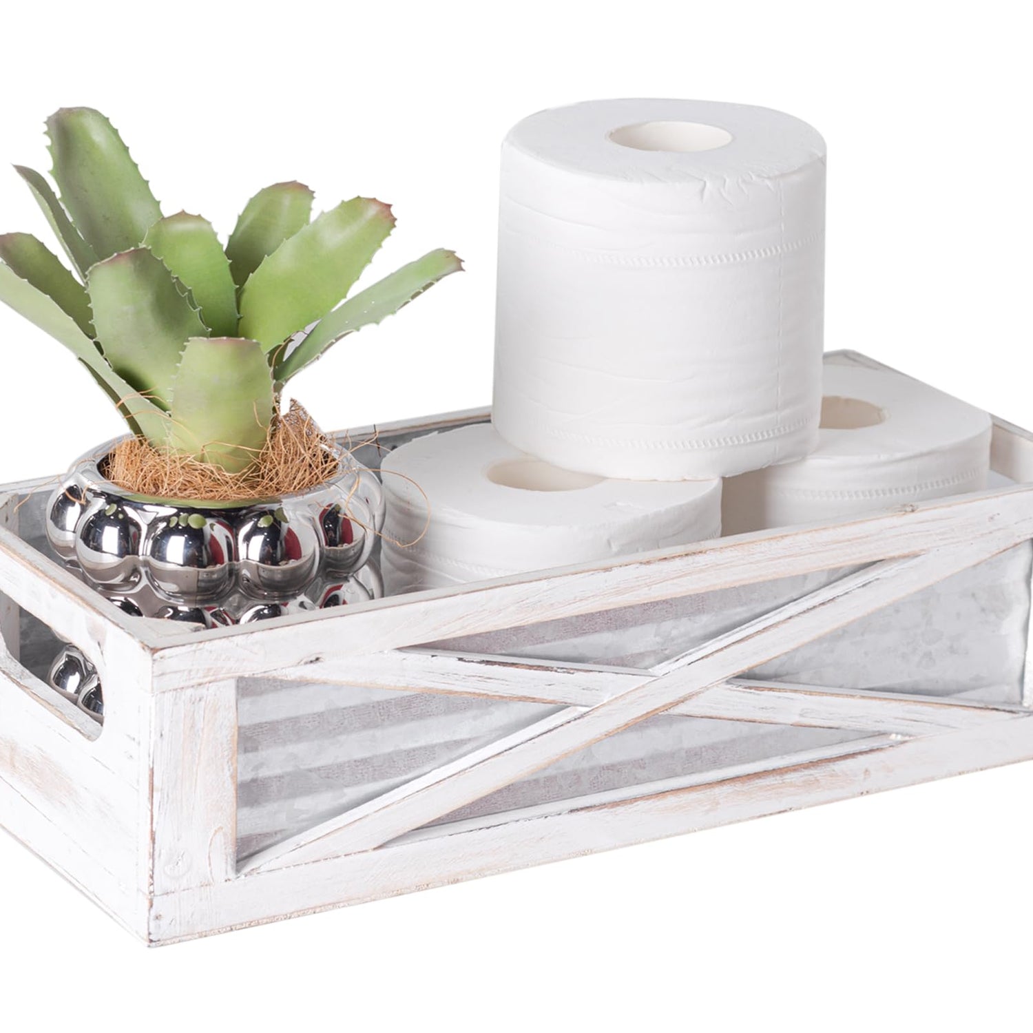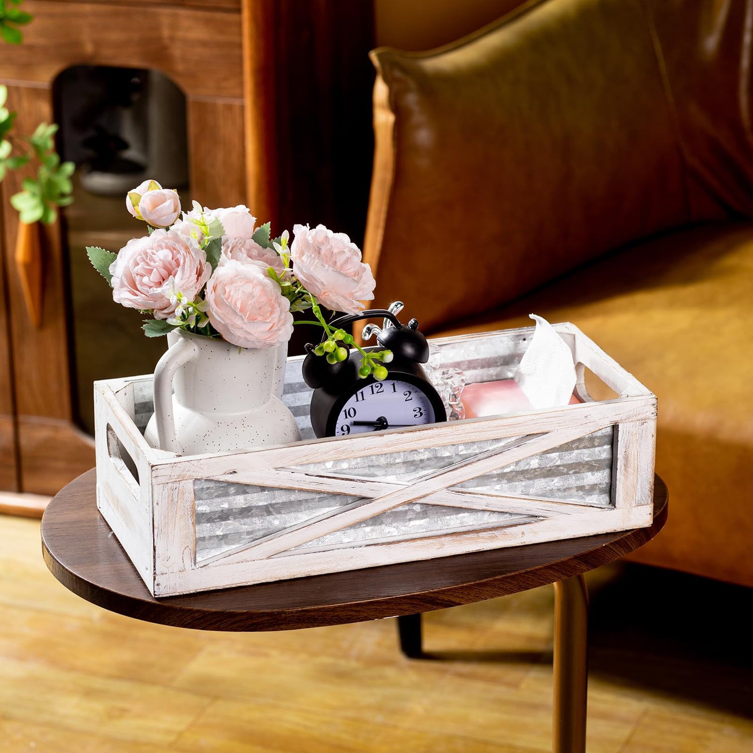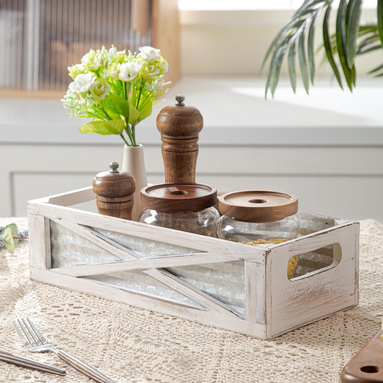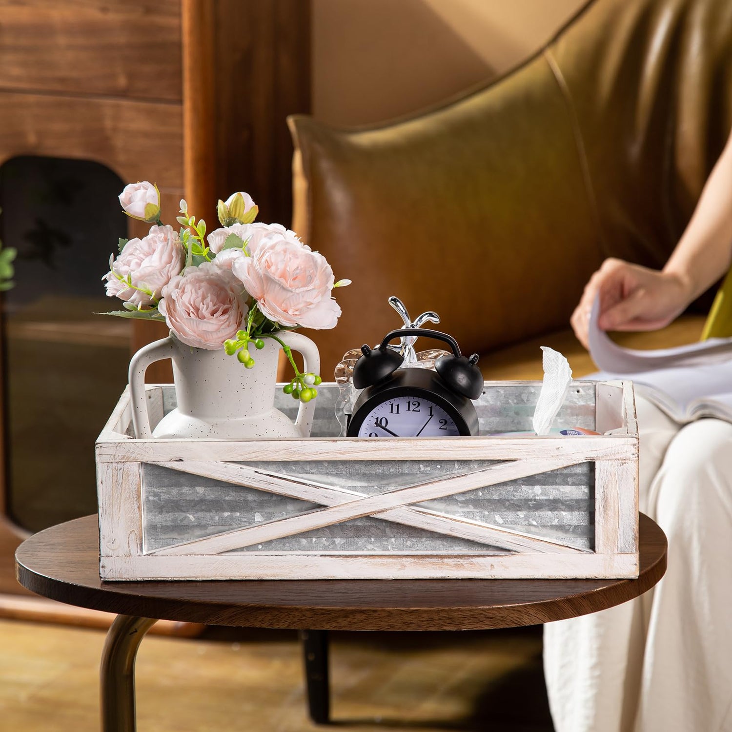 - STURDY CONSTRUCTION - Crafted from high-quality solid wood and galvanized sheet, this farmhouse decorative box is sturdy and durable for long-term use. With 4 non-slip pads in the bottom to prevent scratches the countertop.