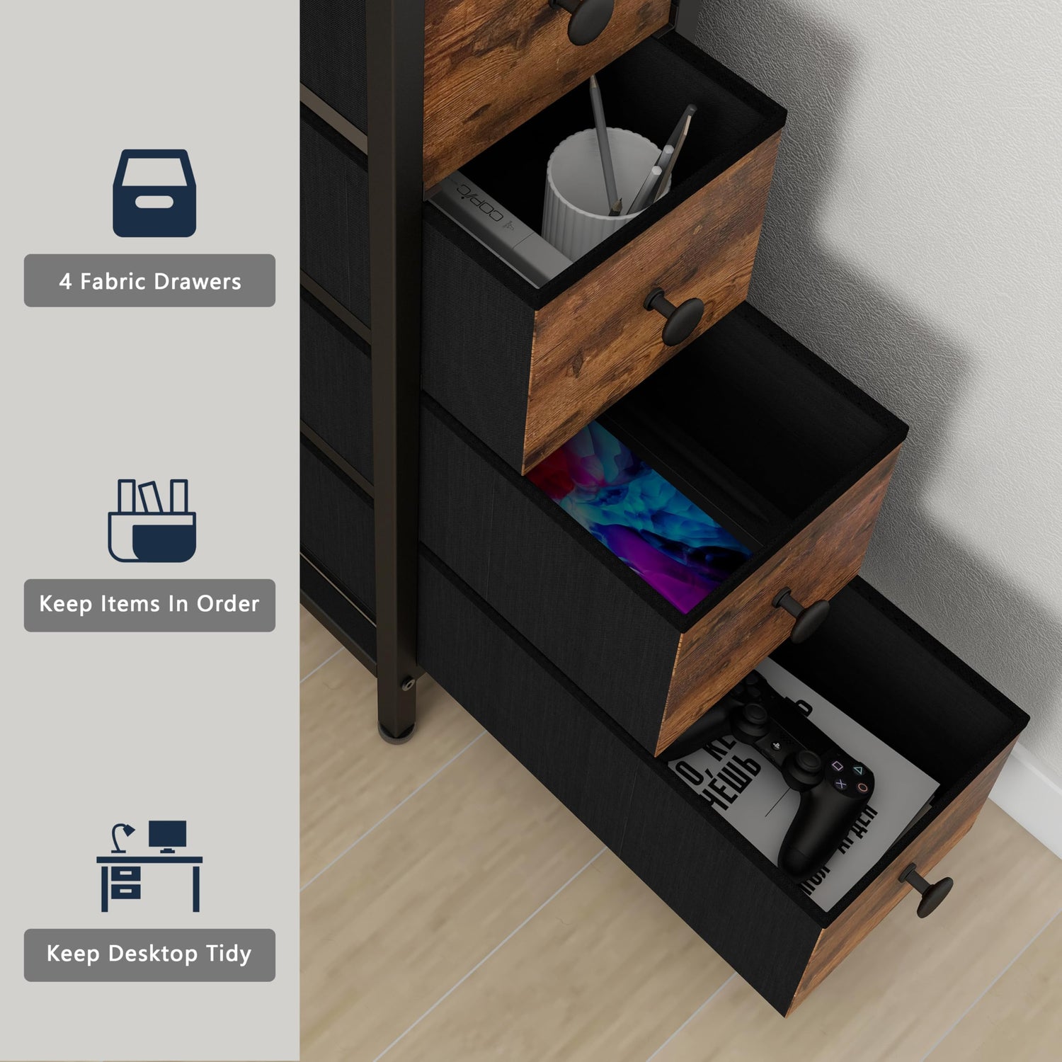 - Full-Size Monitor Stand and 4 Fabric Drawers and 2 Shelves Full-size monitor stand can hold two monitors, helping your line of sight and your monitor are always parallel, helping users maintain an ergonomically favorable sitting position while also reducing neck strain.4 Fabric Drawers and 2 Shelves Can Storage writing materials,chargers,files,books,printer,to meet your work and gaming needs