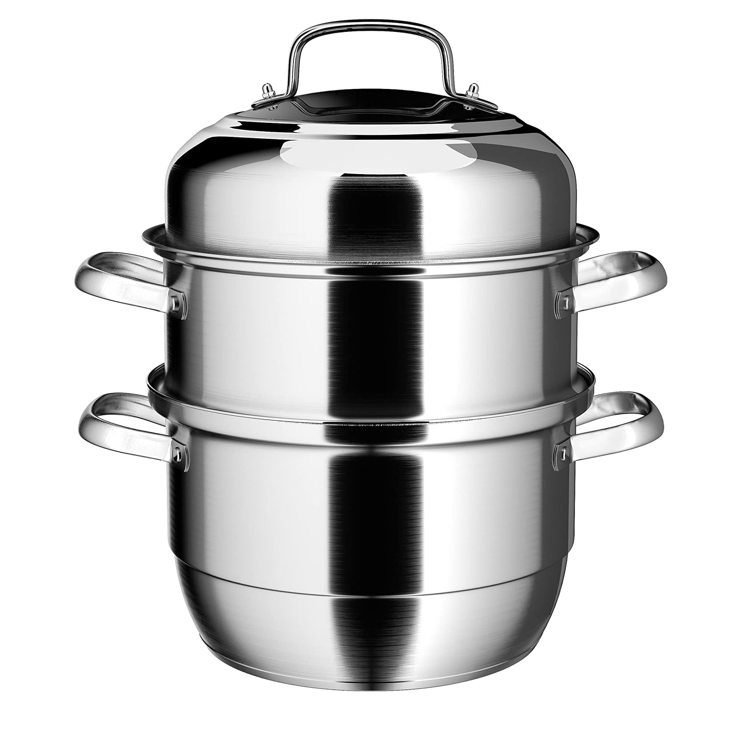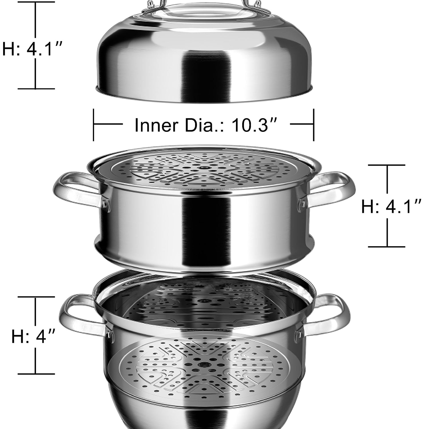 - Large Steamer for Food: Two steamer trays and steamer basket (10.3 inch inner) allows steaming many food(dumpling, bun, bao, dimsum etc.). Visible dome lid with vent, crimped rim design provides drip-proof