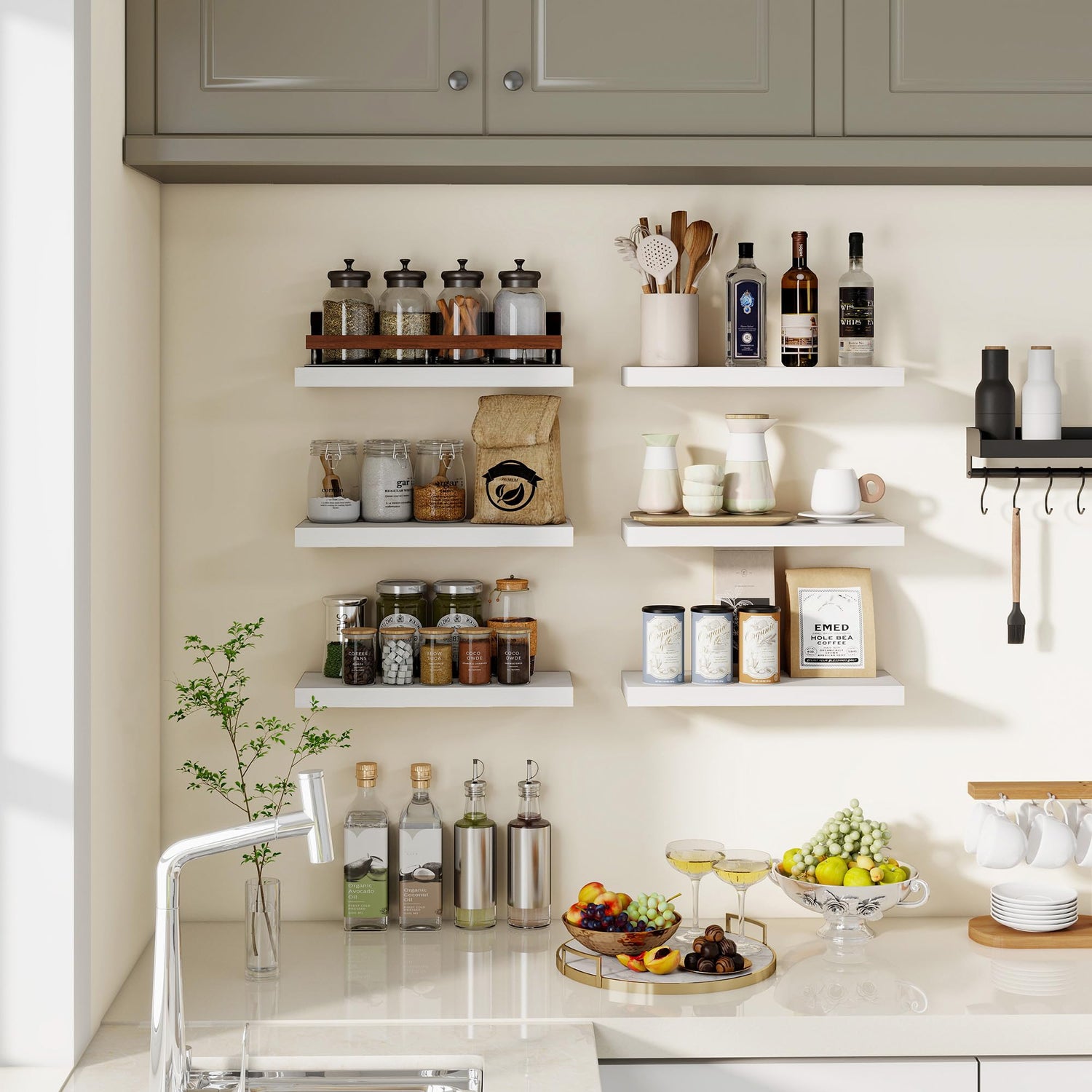 - MAXIMIZE SPACE: The white wall floating shelf design is perfect for maximizing space utilization without sacrificing style. Ideal for kitchens, bedrooms, living rooms, cafes, the shelf for walls create an illusion of openness while keeping your area neat and organized.