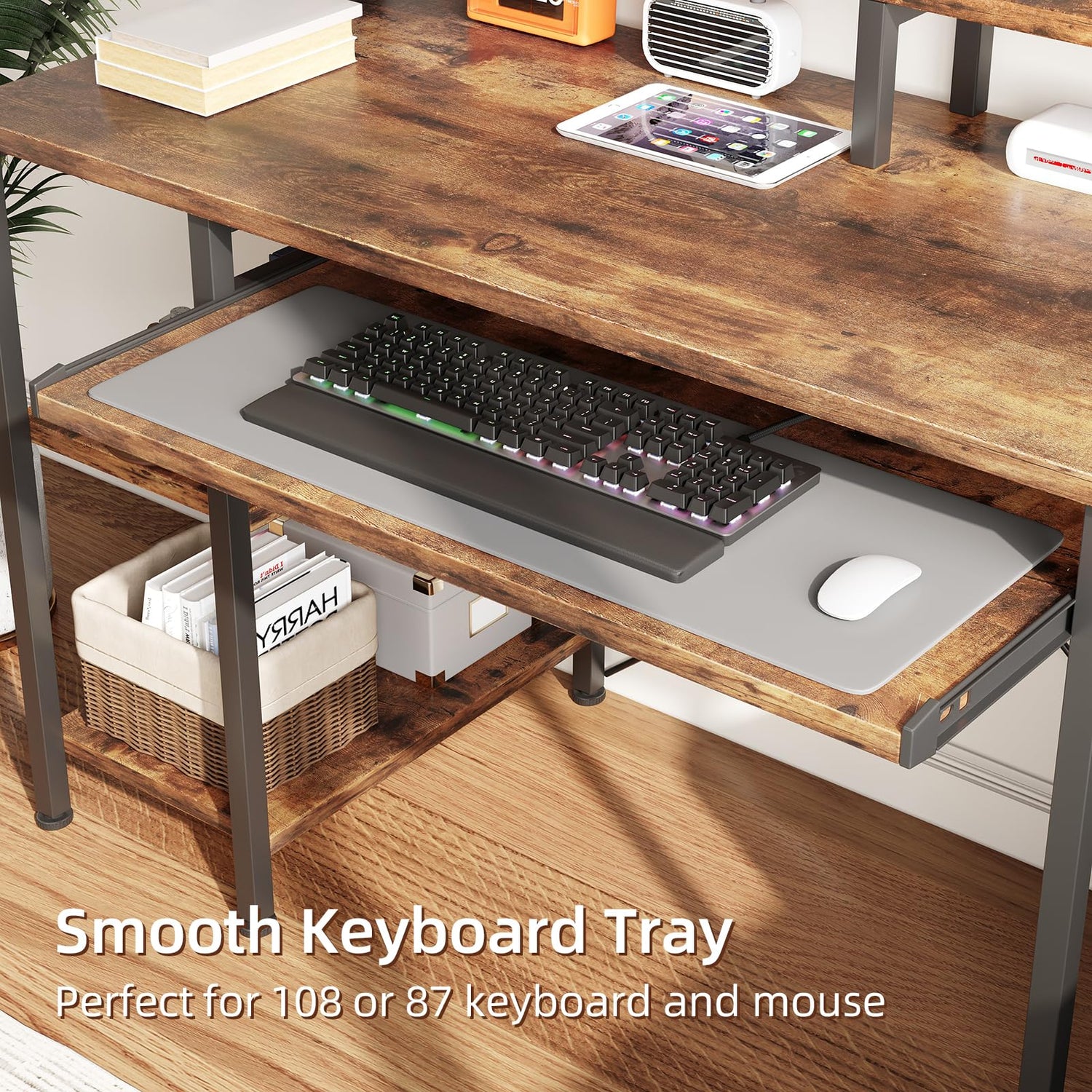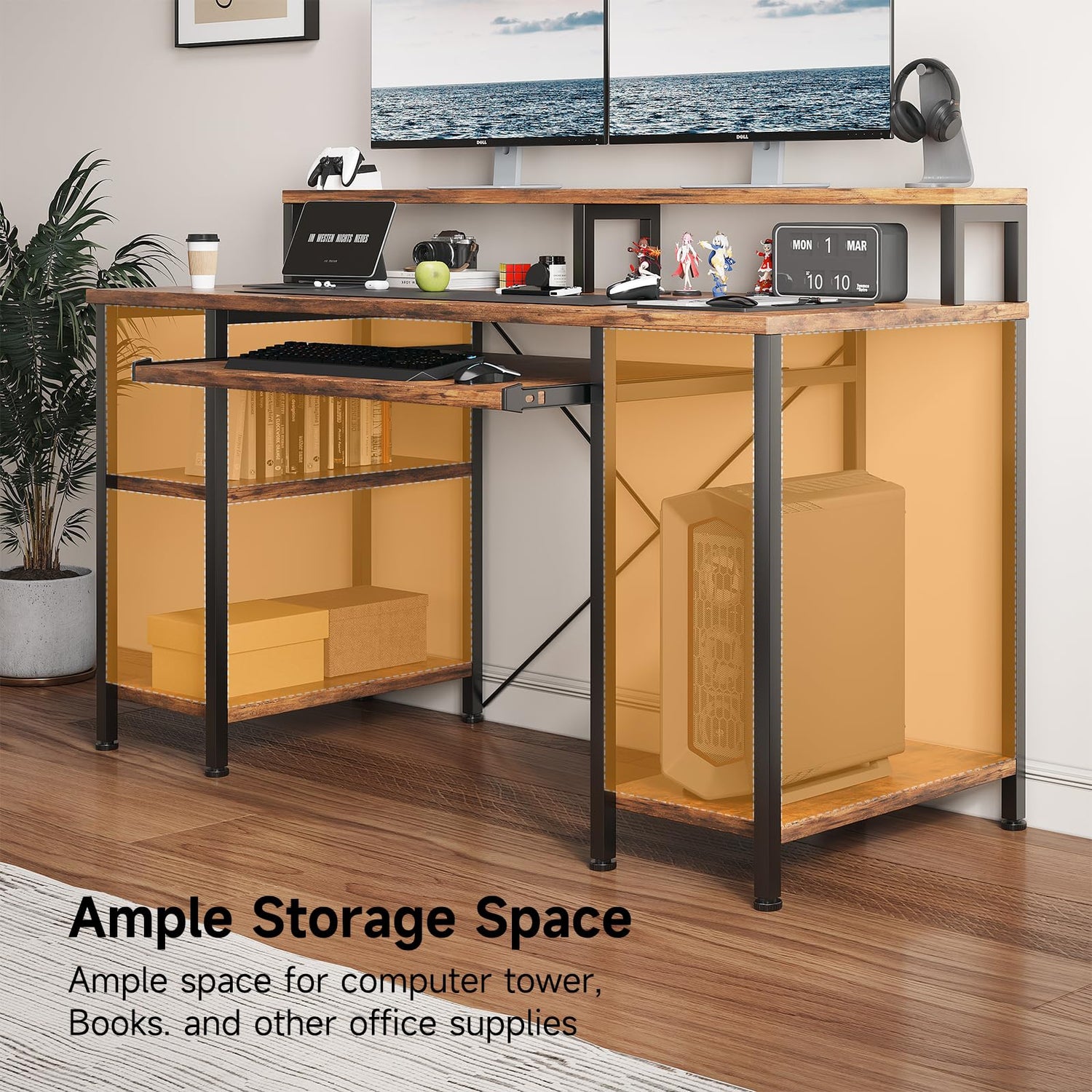 VERMESS 48Inch Computer Desk, Home Office Desks with Keyboard Tray, Gaming Desk with CPU Stand Shelf,Industrial Study Table Wide Writing Desk with Storage Shelves for 2 Monitors, Rustic Brown