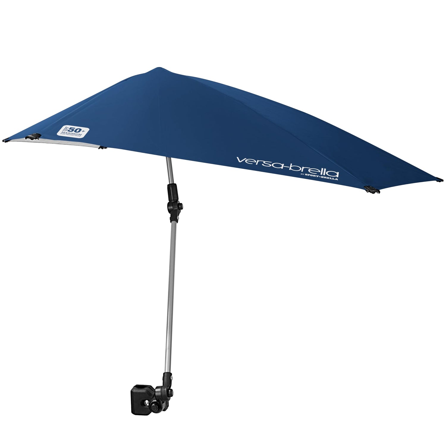 Details: Introducing the Versa-Brella UPF 50+ Personal Sun Shade—your ultimate companion for sun protection during all your sports and outdoors activities. Whether you're watching a thrilling game or enjoying a relaxing day at the beach, the Versa-Brella offers quick and hassle-free sun protection. Thanks to its heavy-duty clamp, this sun shade can be easily attached to various tubular and squared surfaces, making it the perfect sun protection accessory from beach and camping chairs to wagons, baby strollers, and even golf carts and wheelchairs. You can trust it to stay securely in place, no matter where you are. The UPF 50+ material ensures your skin stays safe, blocking out 99.5% of UVA and UVB rays, allowing you to focus on the game, your family, or friends, without worrying about the sun's harmful effects. Moreover, the umbrella edges feature protective safety tips, making it a safer choice compared to traditional umbrellas. When fully open, the Versa-Brella provides a spacious 10 square feet of coverage, ensuring you and your loved ones stay comfortably shaded. Plus, its 4-way, 360-degree swivel and two push-button hinges allow you to easily adjust the angle and position of the umbrella to block the sun at any time of the day. Transporting the Versa-Brella sun shade umbrella is a breeze. At just 1.8 pounds, it folds down to a compact size of 35.04 x 3.35 inches and comes with a matching carrying bag to make it even more convenient to take with you wherever you go. Enjoy the great outdoors without worrying about the sun's harmful rays. The Versa-Brella Personal Sun Shade is your go-to solution for convenient, reliable sun protection. It also comes with a 1-year limited manufacturer's warranty for your peace of mind.
