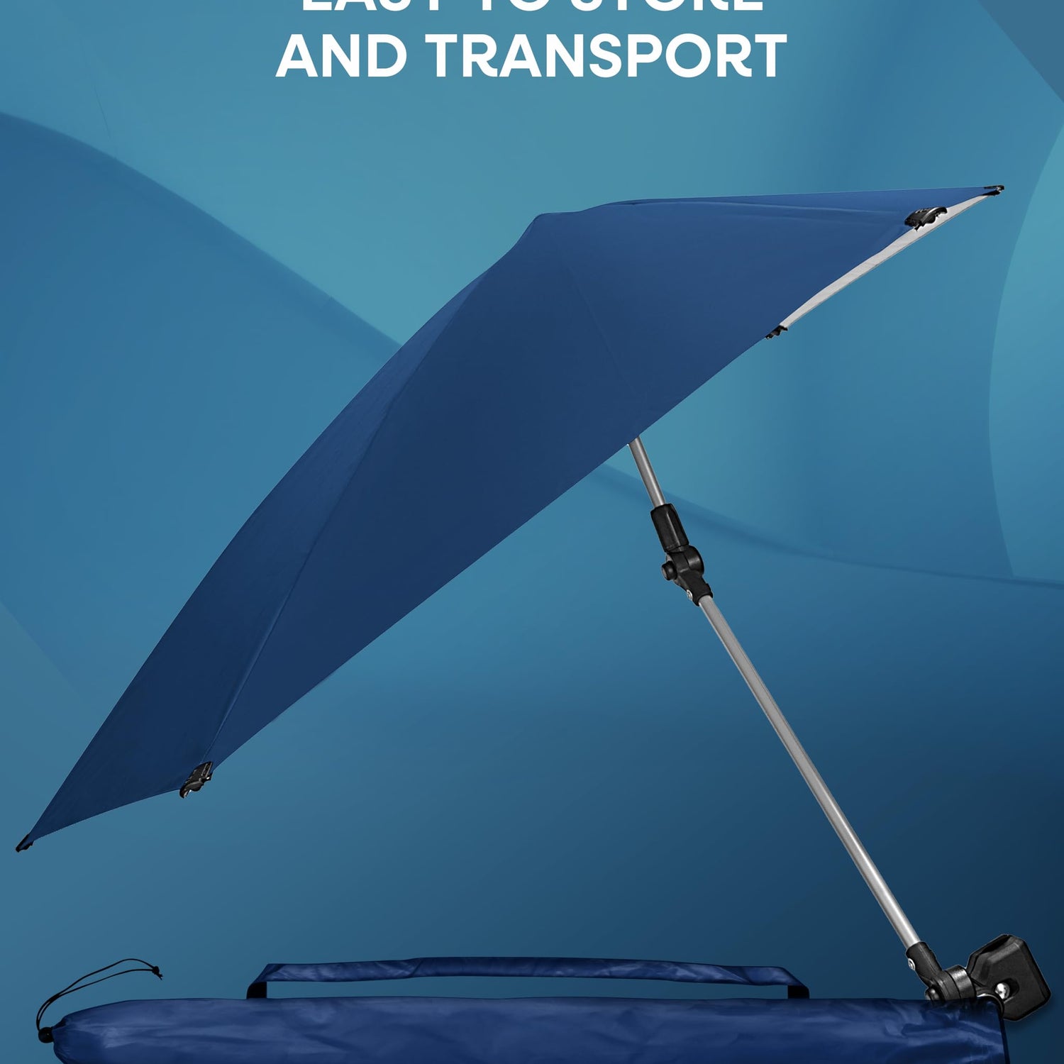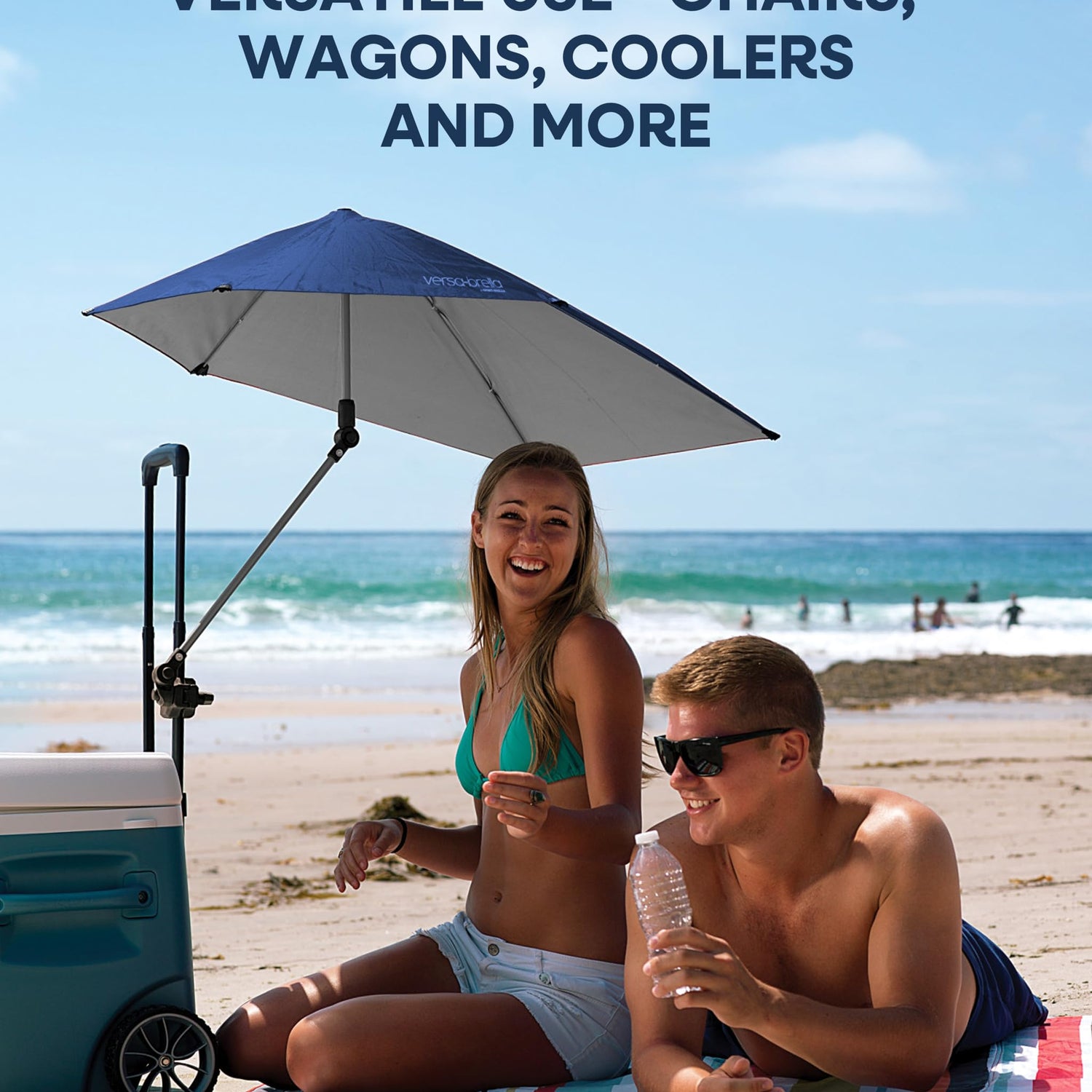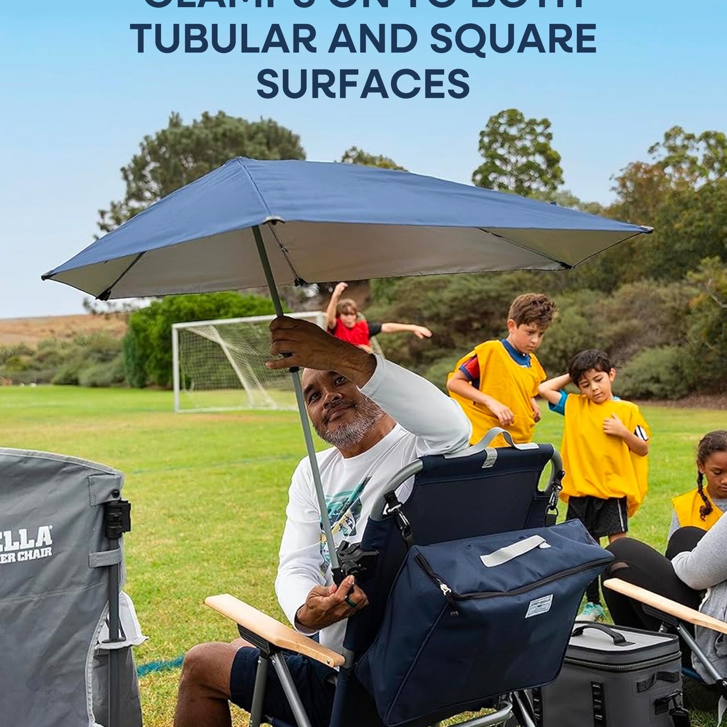 - STAY SHADED ANYWHERE: The Versa-Brella features a heavy-duty clamp that opens up to 1.5 inches, allowing it to securely attach to various tubular and squared surfaces on chairs, wagons, strollers, golf carts, and more