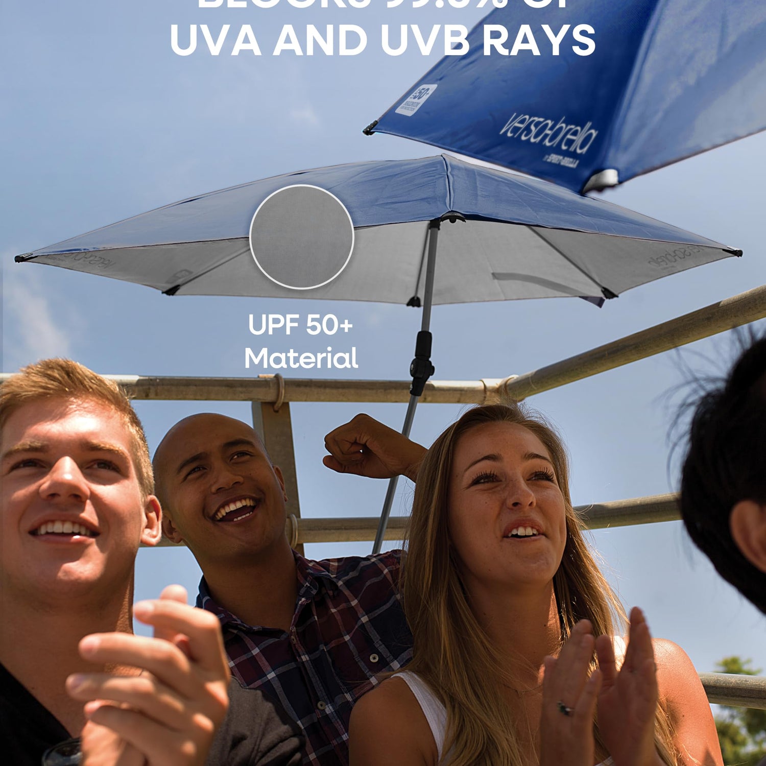 Versa-Brella UPF 50+ Personal Sun Shade - Portable Umbrella for Sports & Outdoors - Secure Clamp, 360-Degree Swivel Adjustable Position for Maximum Sun Protection - Compact with Carry Case