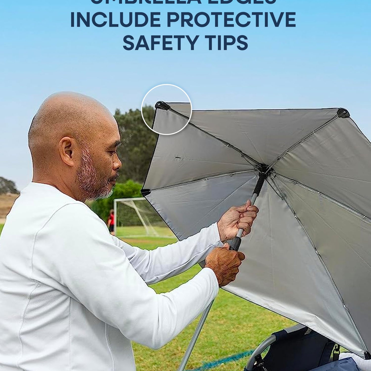 - SAFE & USER FRIENDLY: Featuring protective safety tips on the umbrella's edges for added eye protection, the Versa-Brella is safer and easier to set up than bulky, traditional umbrellas