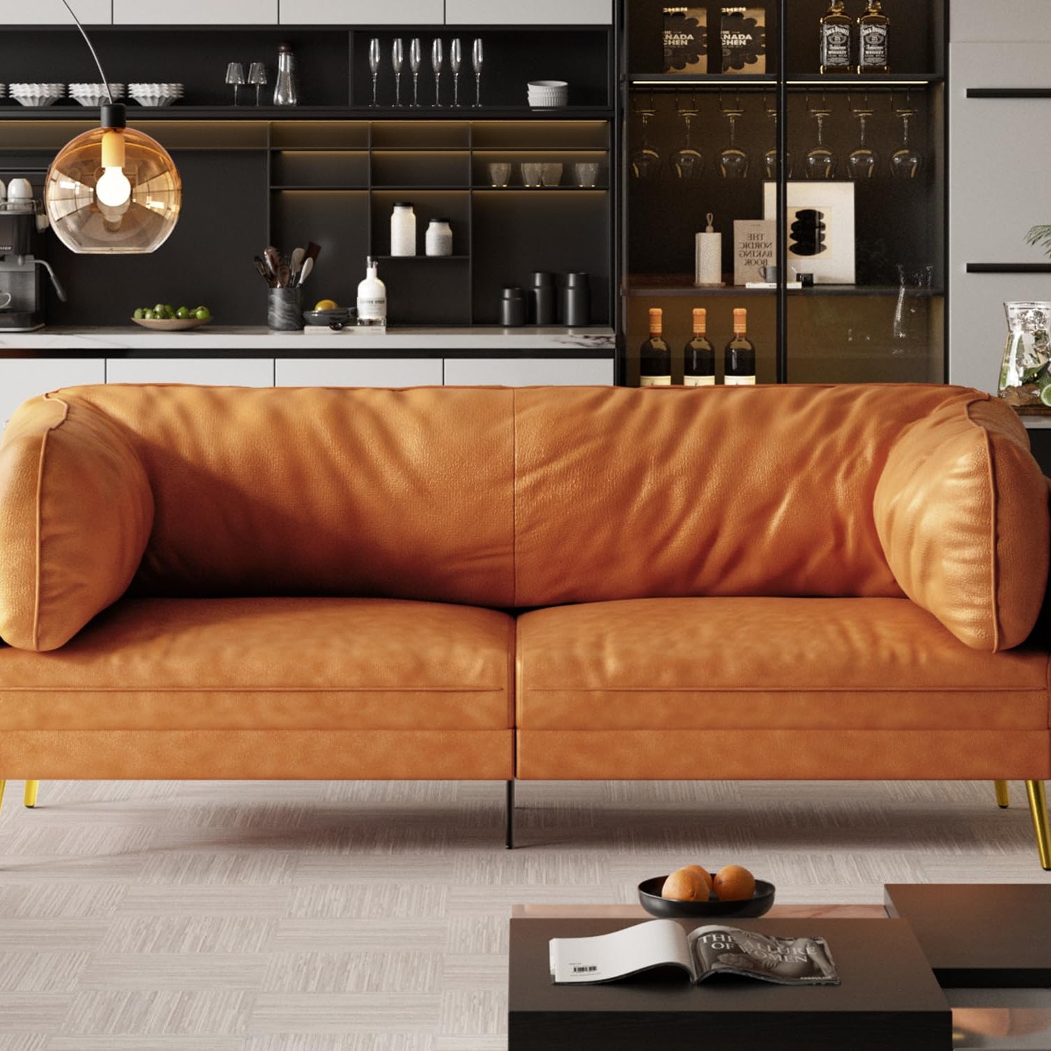 - 5 Steps 10 Min.Assembly: This orange sofa breaks new ground with a no tool assembly. 1 adult, 5 steps, 10 minutes, that's all it takes to install. All around for the Vesgantti Sofa's customers, all parts of this 73 inch sofa are placed in one package.