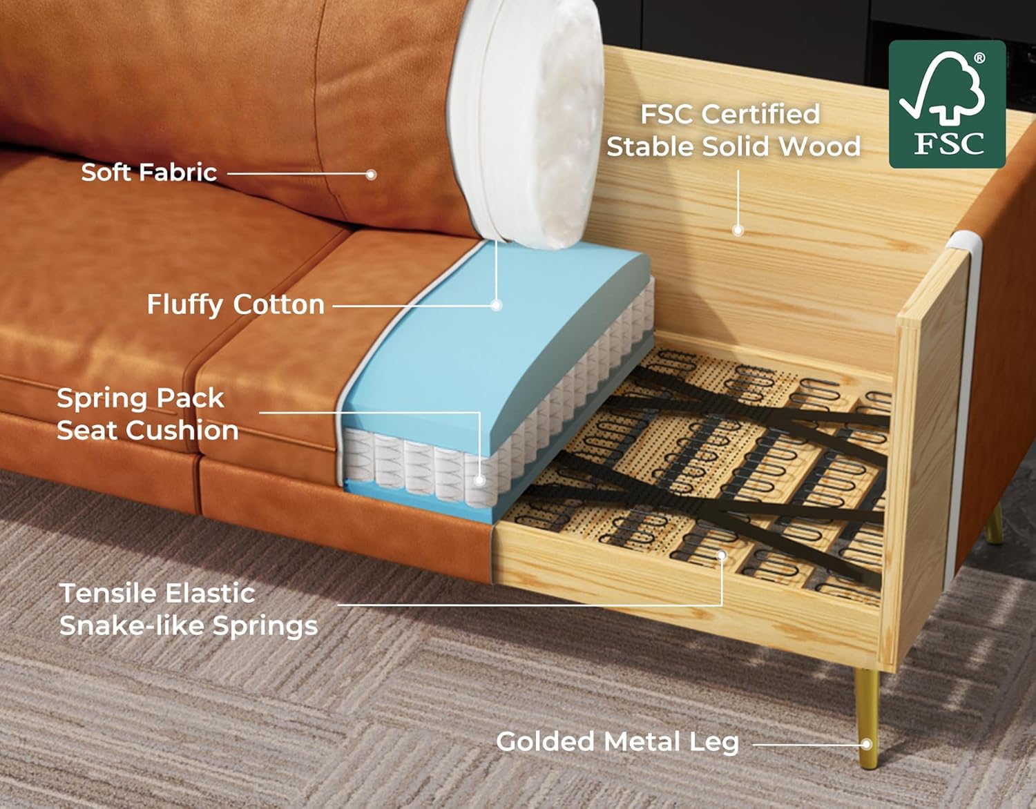 - High Resilient Seat Comfort: The cushions of the mid century loveseat sofa are made of a combination of serpentine springs, pocket springs and high-density foam. This combination ensures that the sofa cushion is both comfy and resilient, and that it will not collapse or deform over the long term.