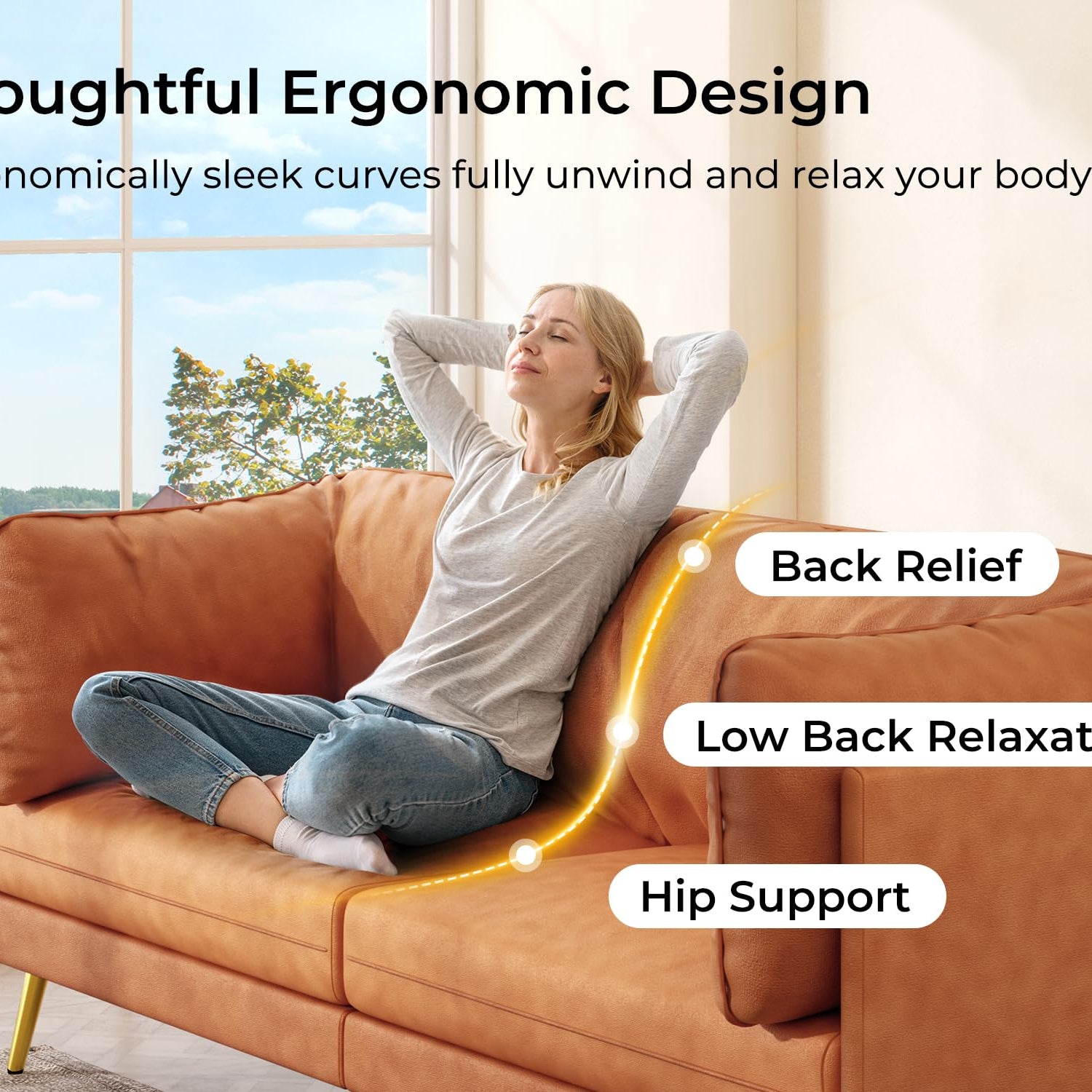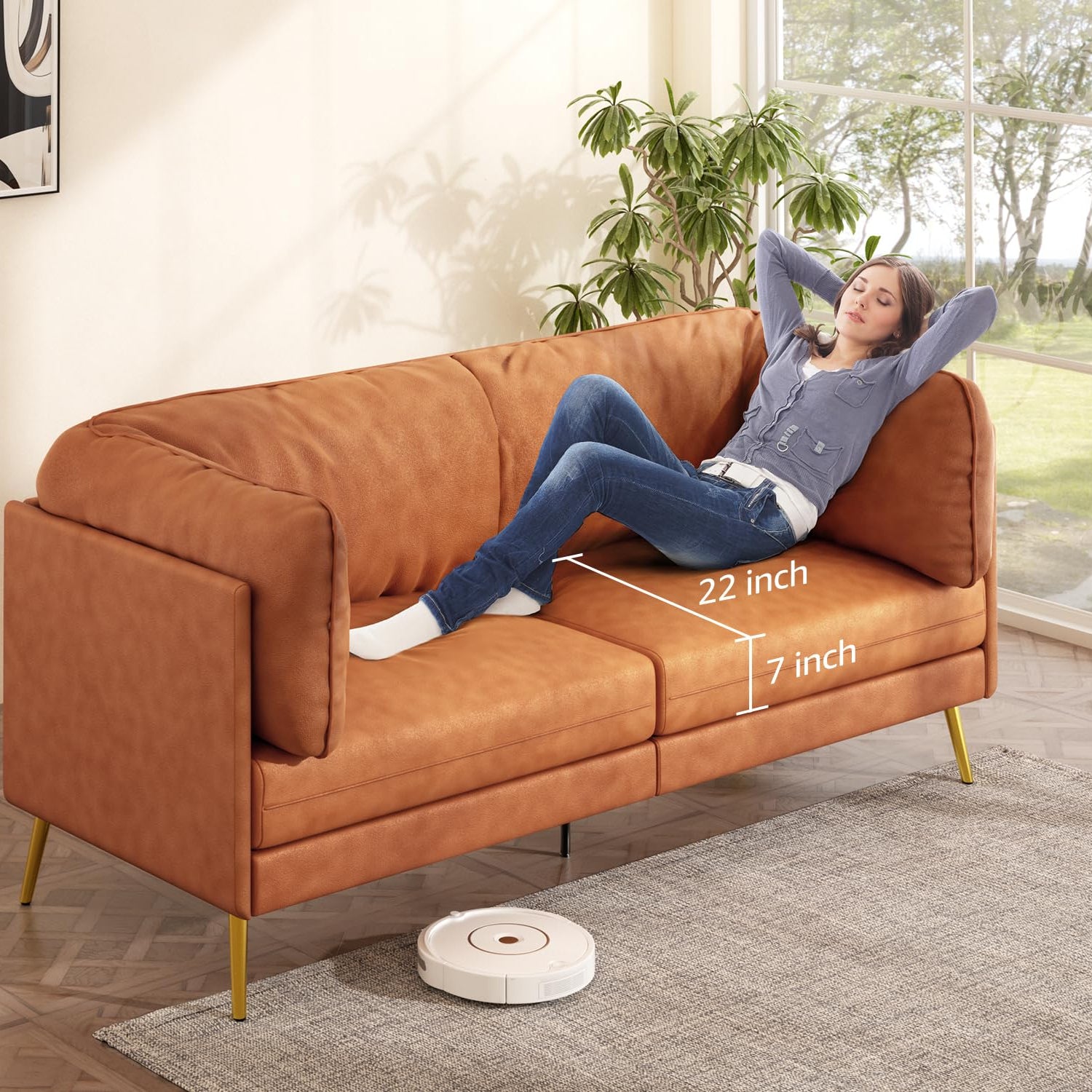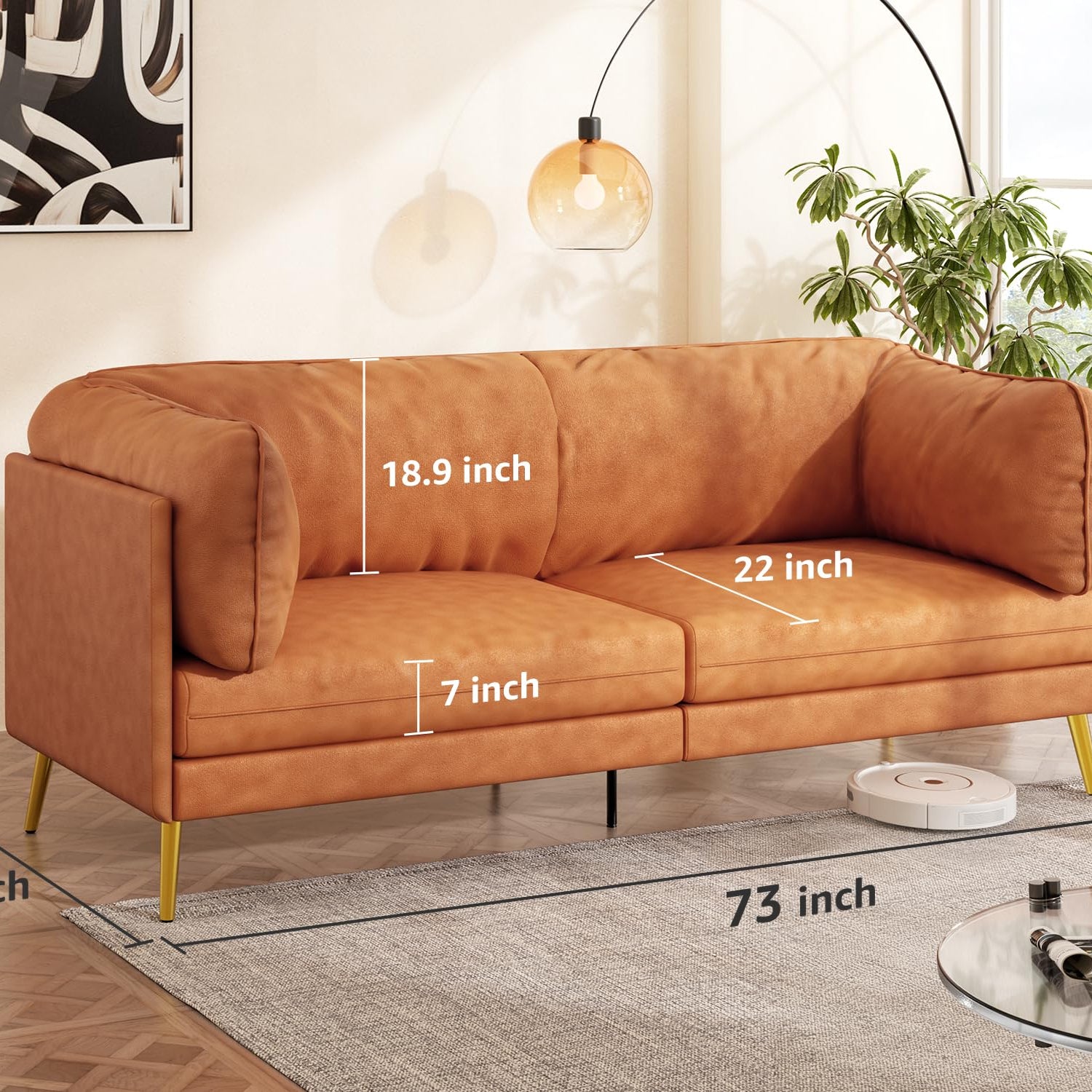 Vesgantti 73'' Mid-Century Modern Couch, Small Loveseat for Office, Living Room, Apartment, Tool-Free Assembly, Solid Wood Frame, Comfy Cushions, Orange Fabric