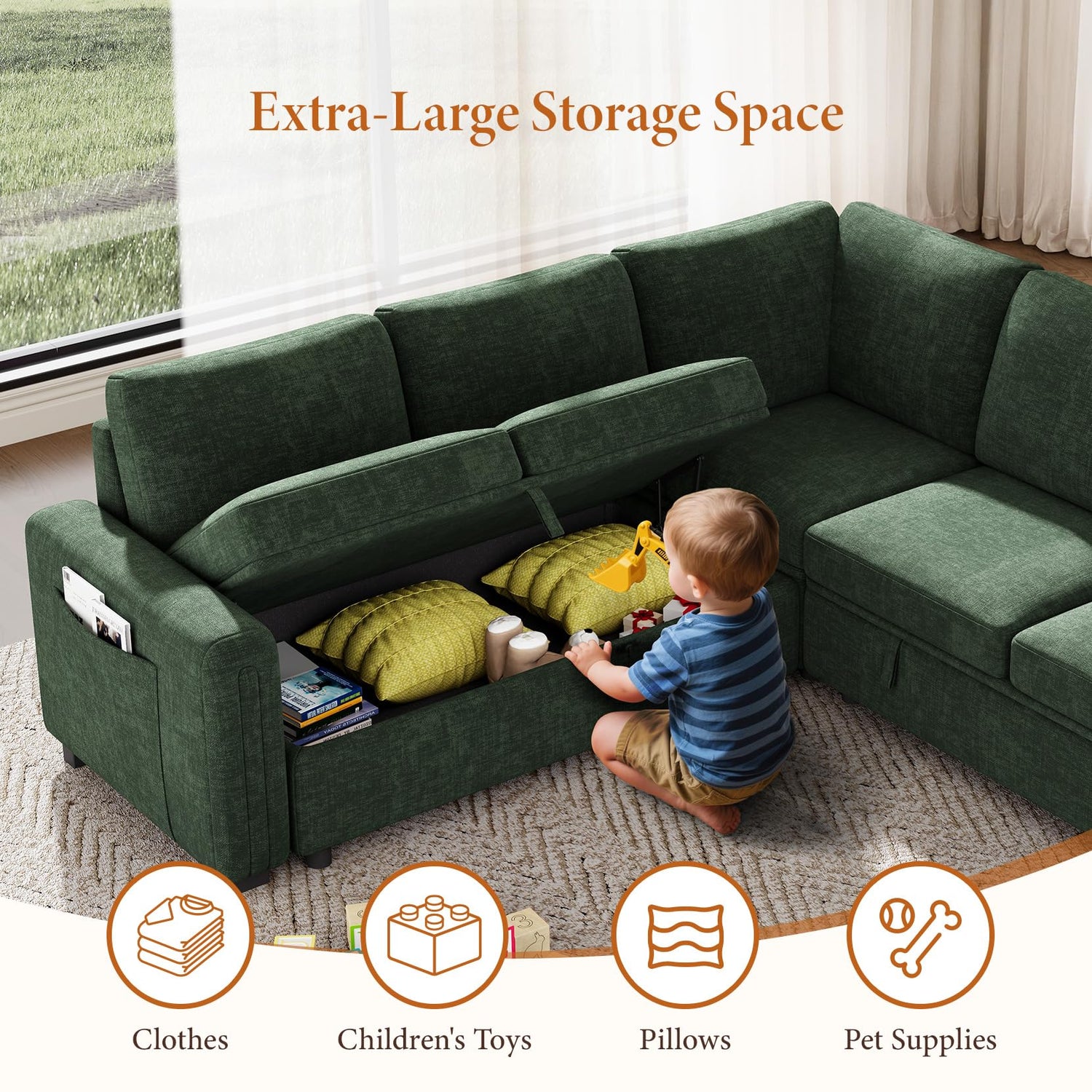 - Modular Sectional Sofa with Storage: This L shaped modular couch is equipped with storage space at the bottom and side of the sofa for you to organize your space. You can store blankets, pillows, toys, daily necessities in a hidden place to save space and keep the space tidy. The sectional couch with pull out bed is a ideal choice for living room, bedroom, office and apartment