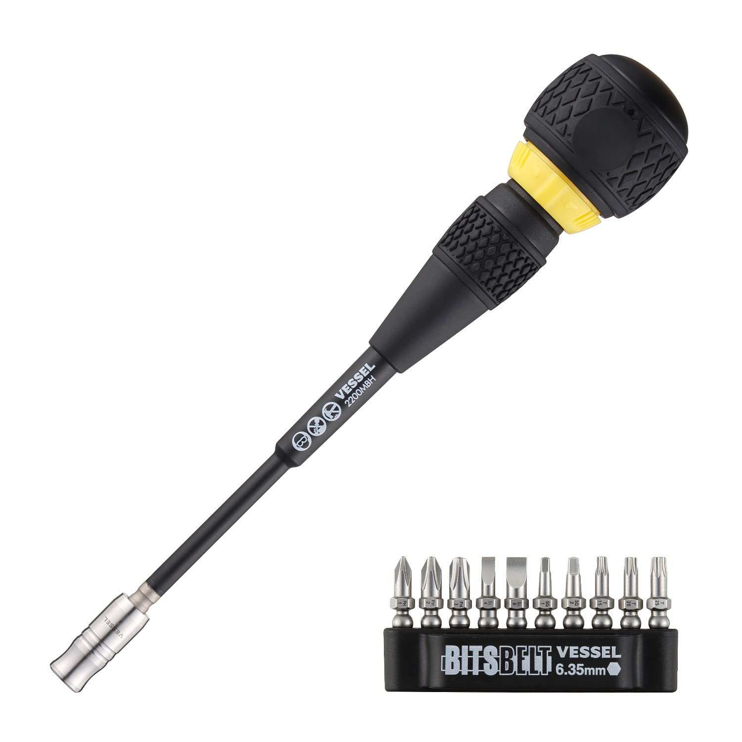 VESSEL - BALL GRIP Ratchet Interchangeable Screwdriver with 10 PC. Bit Set 2200MBH120K01