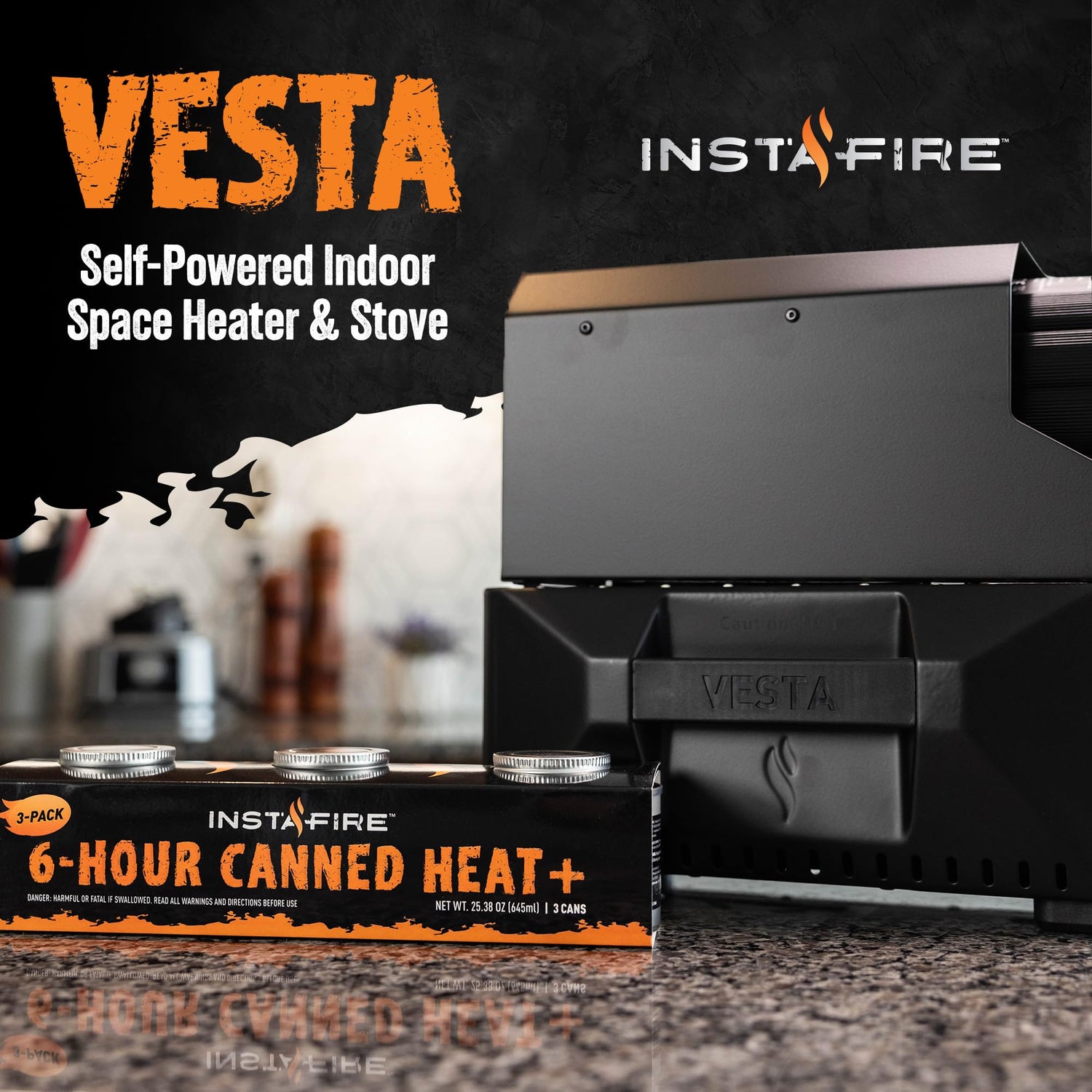 - Holds up to 3 Canned Heat (The Insta-Fire Vesta Stove Includes 3 cans) *** Shelf Life Insta-Fire Canned Heat: When stored in ambient conditions above its freezing point, this product will last for many years. Product may freeze when temperature reaches 16 degrees Fahrenheit (-8 Celsius).