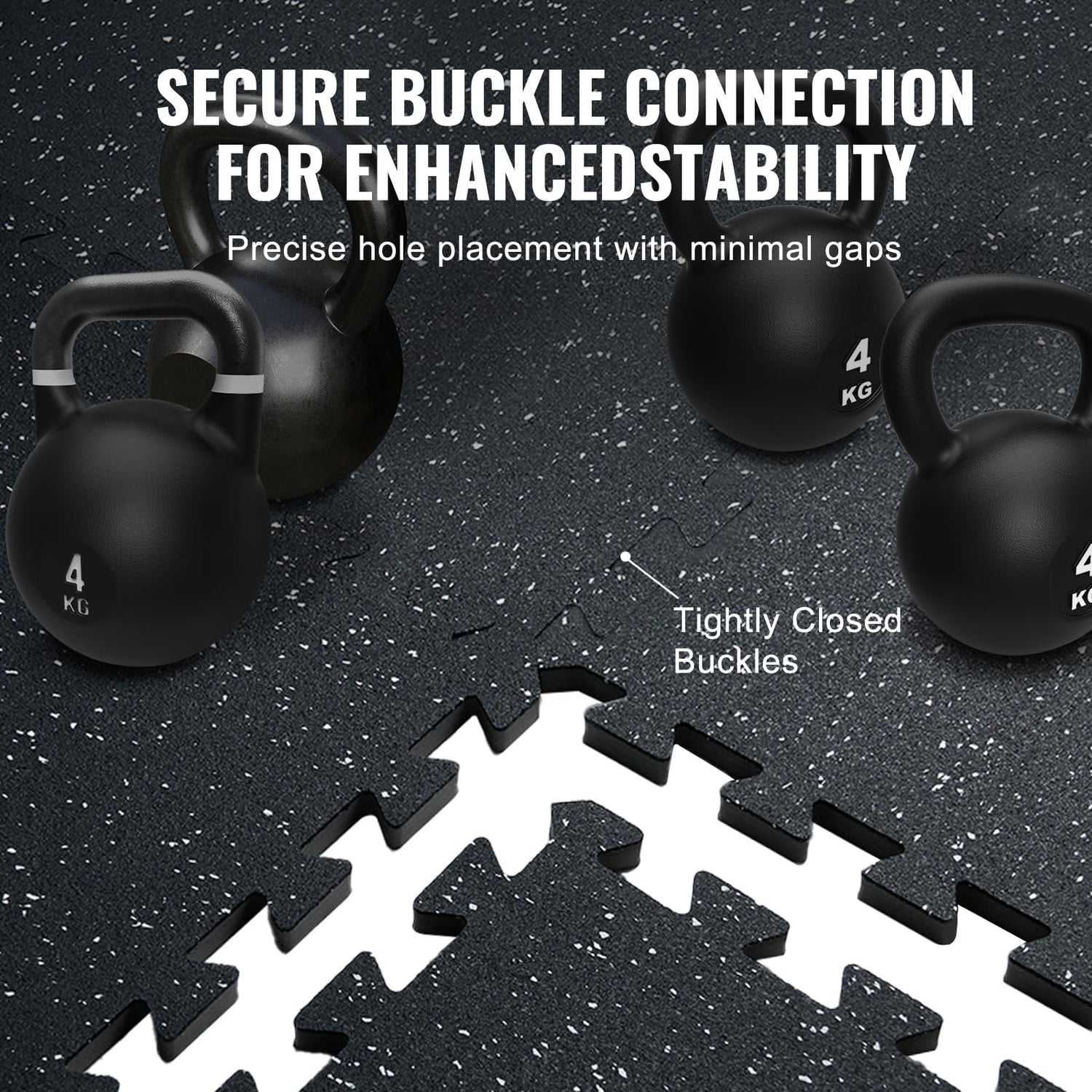 VEVOR 0.56 Inch Thick Gym Floor Mats, 25 Tiles Rubber Top with EVA Foam, 24" x 24" Gym Flooring Workout Mats with 100sq.ft Coverage, Interlocking Puzzle Gym Mats for Gym, Home, Garage, Black & White