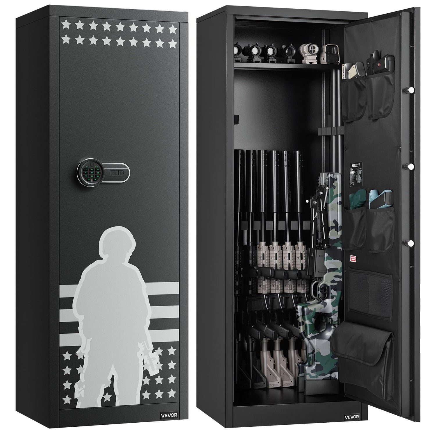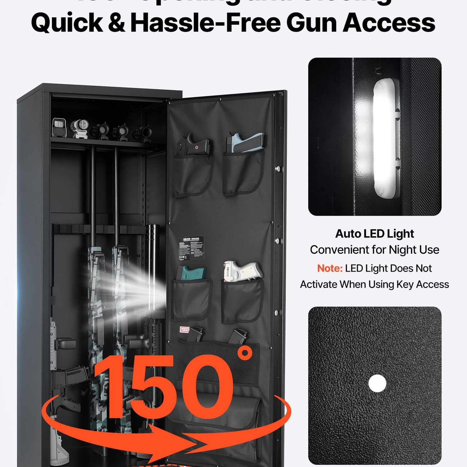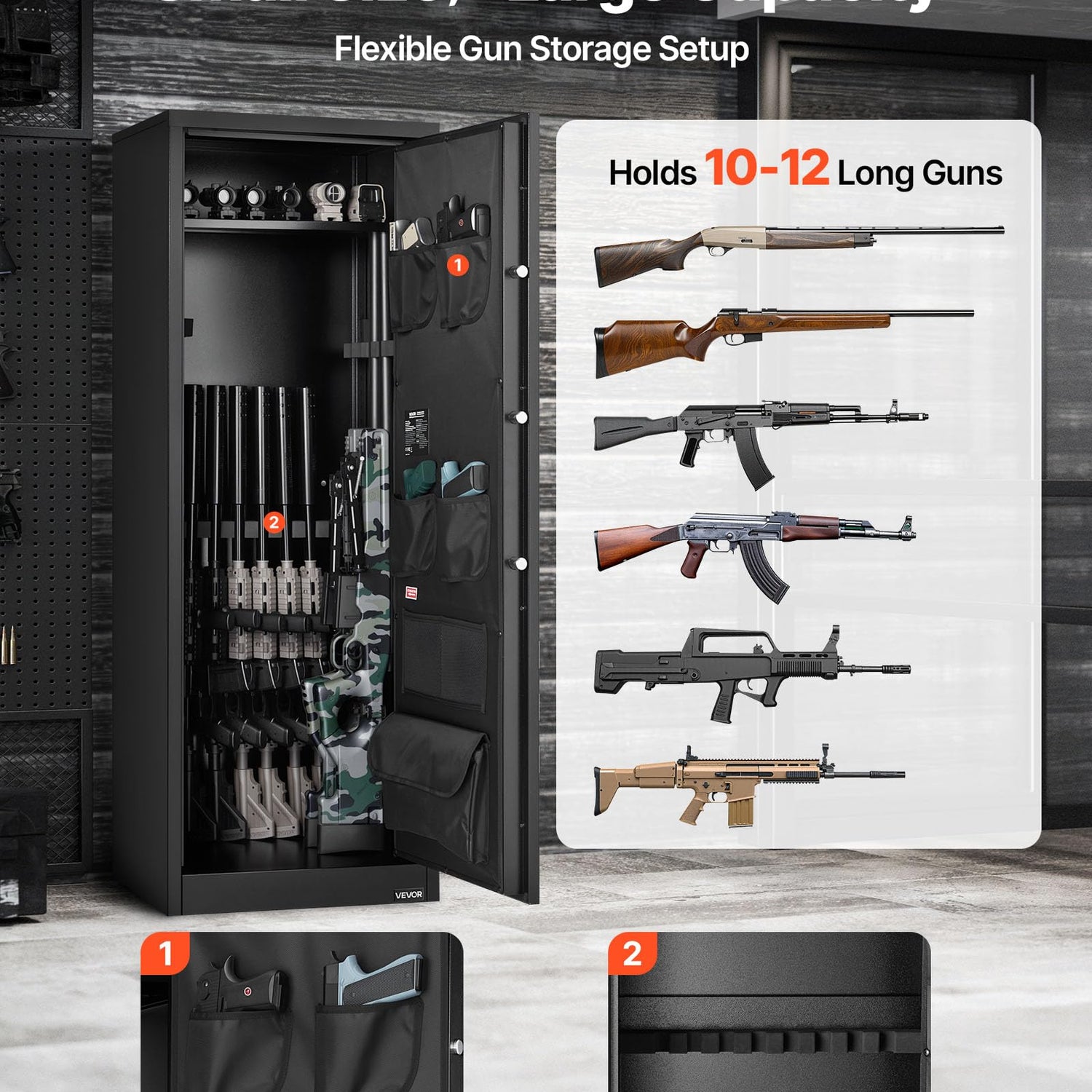 VEVOR 10-12 Gun Safe, Long Gun Cabinet for Rifles and Pistols, Quick Access Rifle Safe with 4 Pistol Pockets and 3 Adjustable Racks, Large Digital Cabinet with Key and Password Lock