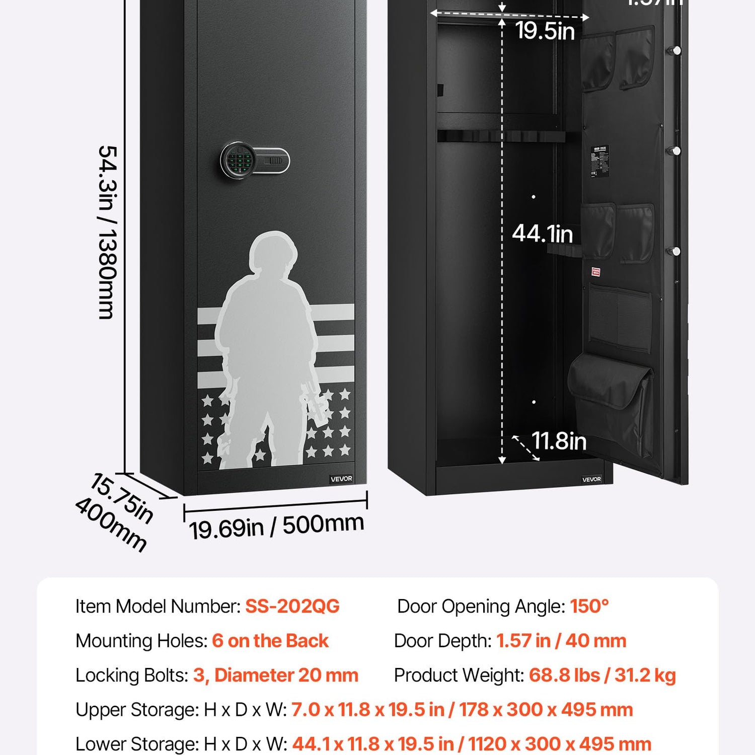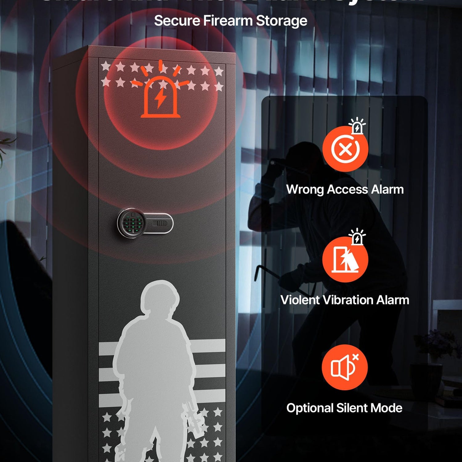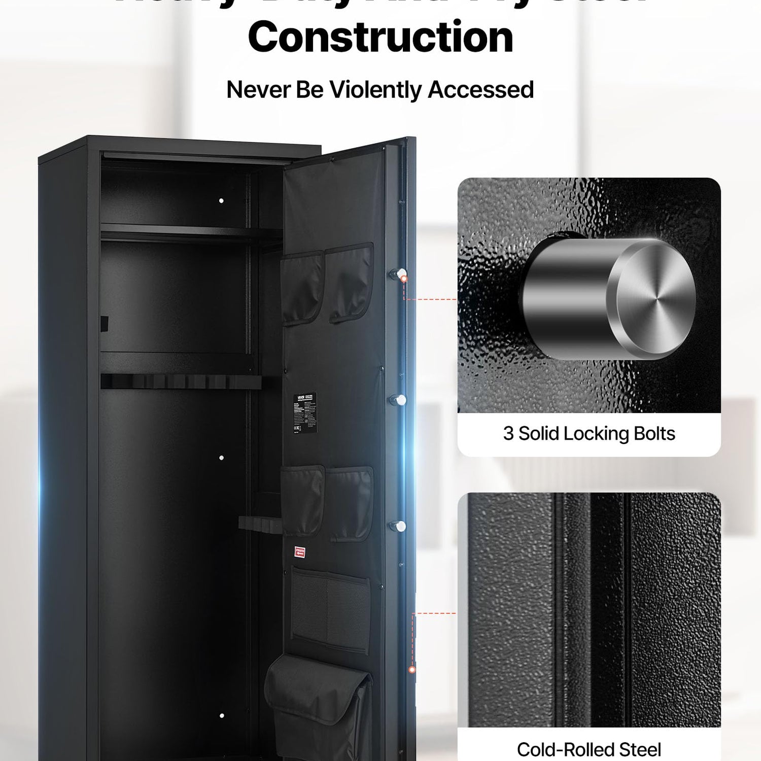 VEVOR 10-12 Gun Safe, Long Gun Cabinet for Rifles and Pistols, Quick Access Rifle Safe with 4 Pistol Pockets and 3 Adjustable Racks, Large Digital Cabinet with Key and Password Lock